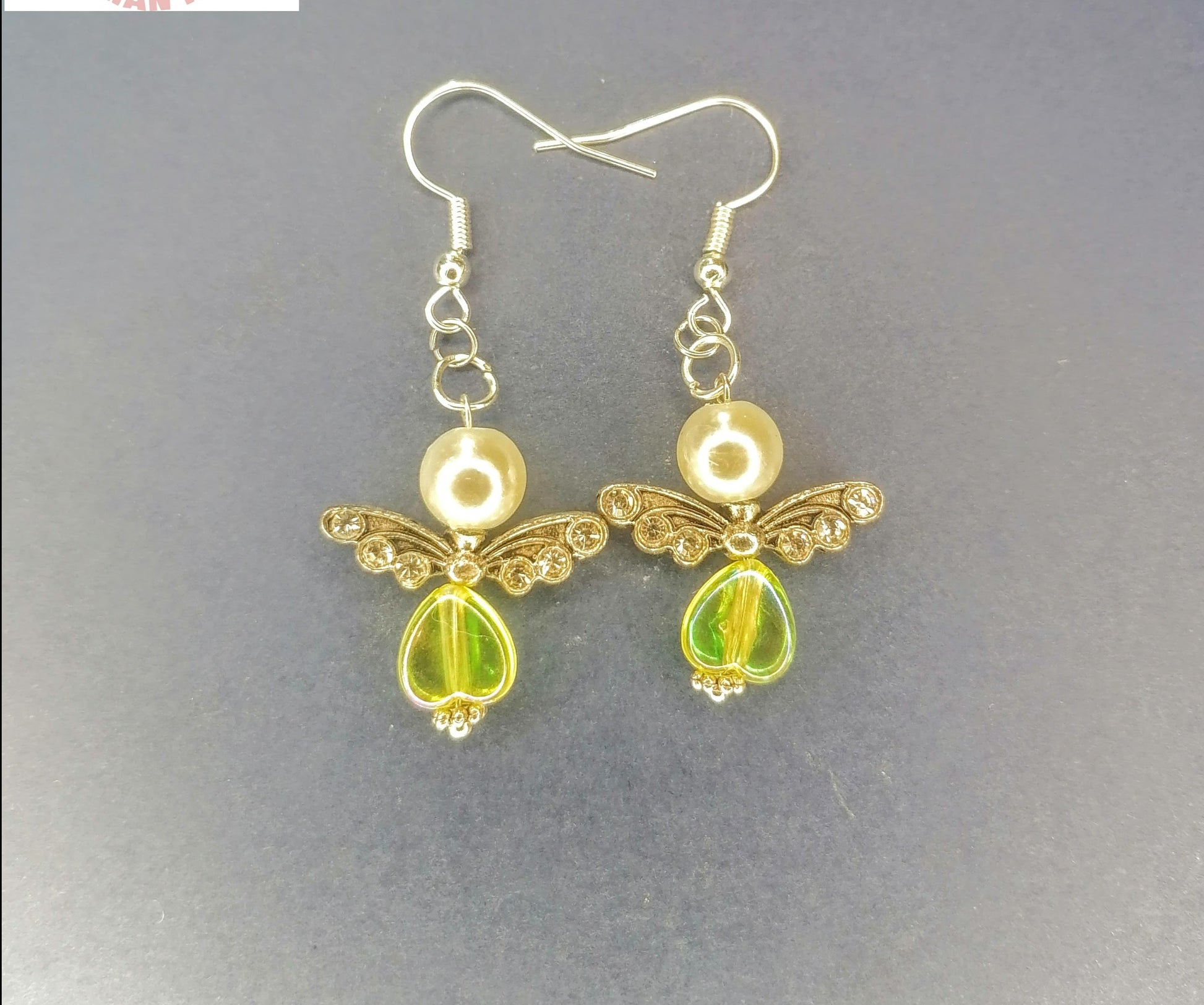 Riipuksena helmistä rakennettu enkeli. siipien pienet timantit toisella puolella antaa kivaa yksityiskohtaa. Korussa hopeoidut koukut. Nikkelitön ja allergiatestattu. Tuotteella ilmainen toimitus.