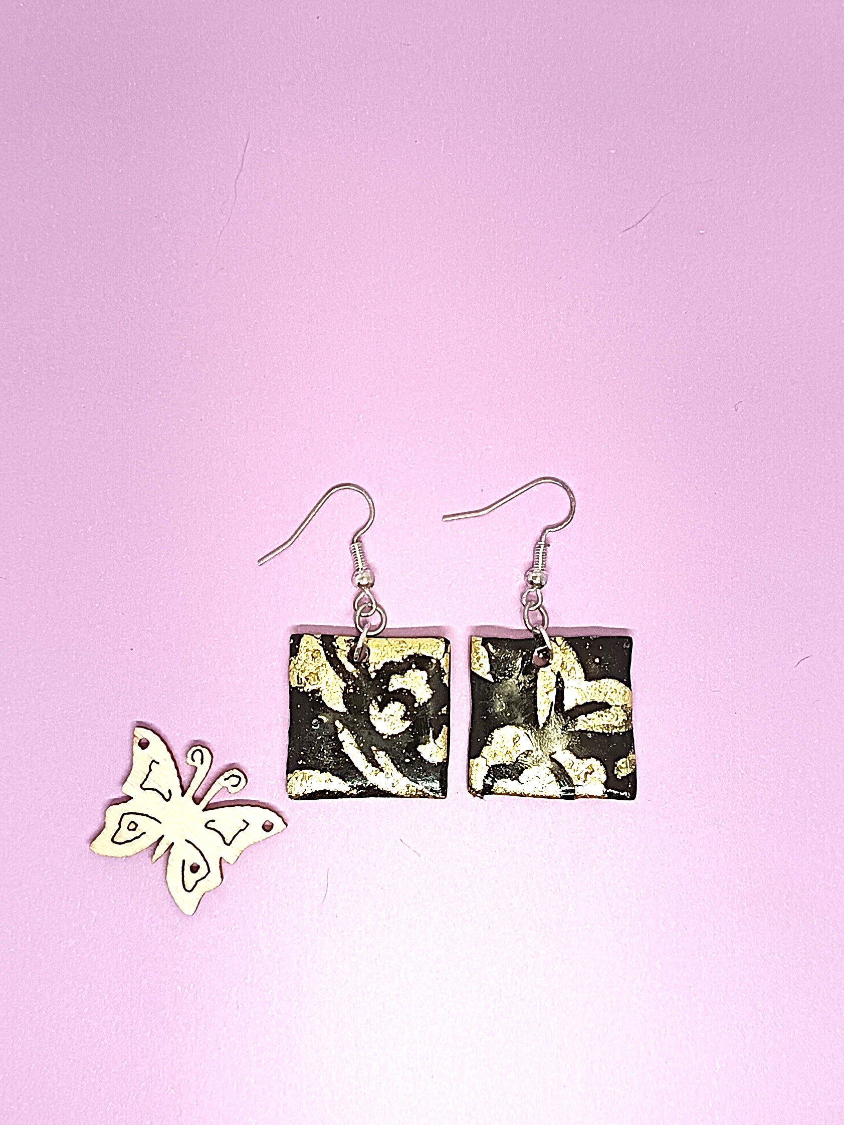 Korvakorut on FIMO Soft polymeerimassaa, joka on päällystetty UV RESINILLÄ. Etupuolella kuviointia.  Korussa hopeoitu koukku. Nikkelitön ja allergiatestattu. Tuotteella ilmainen toimitus.
