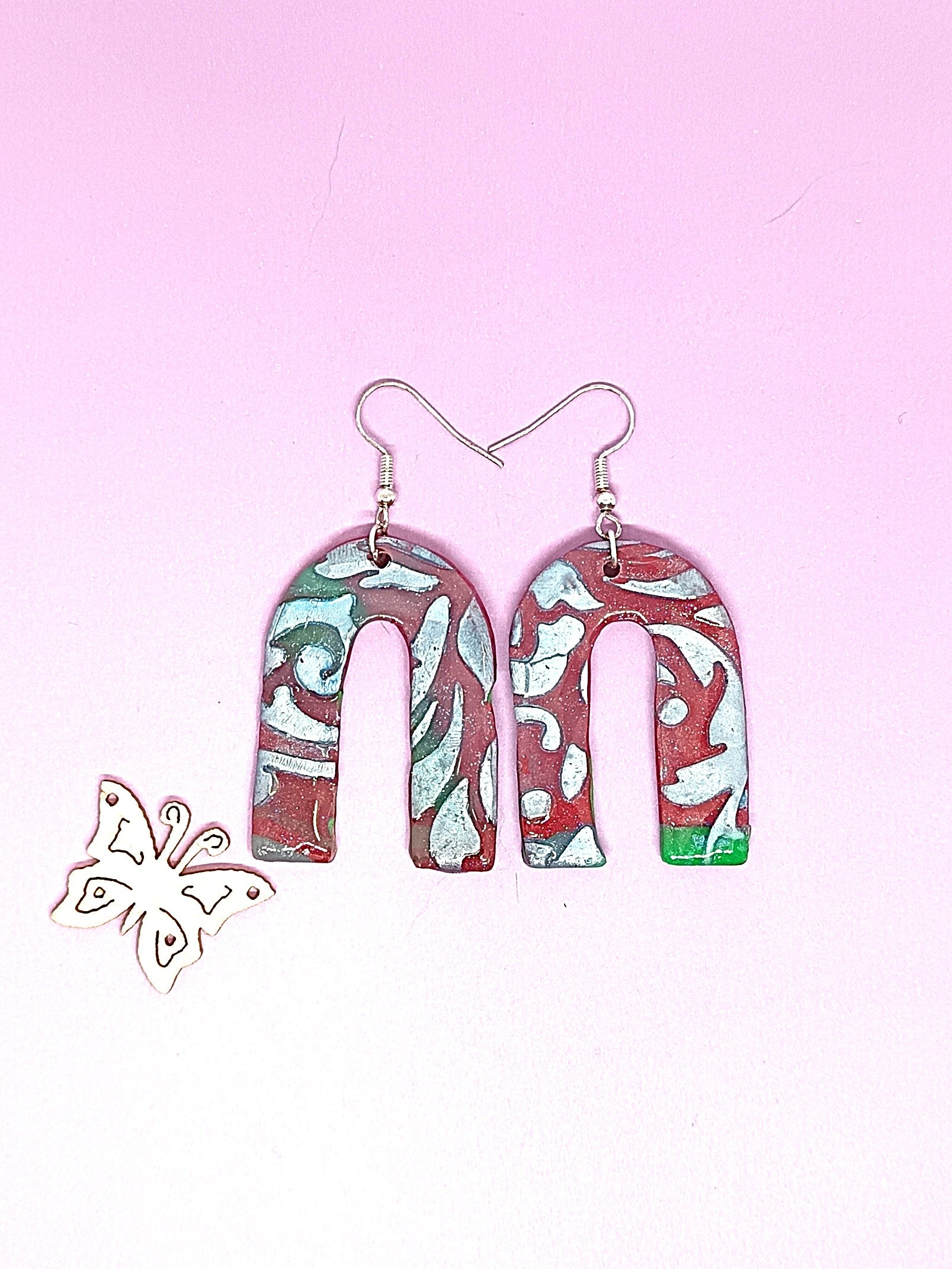 Korvakorut on FIMO Soft polymeerimassaa, joka on päällystetty UV RESINILLÄ.  Etupuolella kuviointia. Korussa hopeoitu koukku. Nikkelitön ja allergiatestattu. Tuotteella ilmainen toimitus.