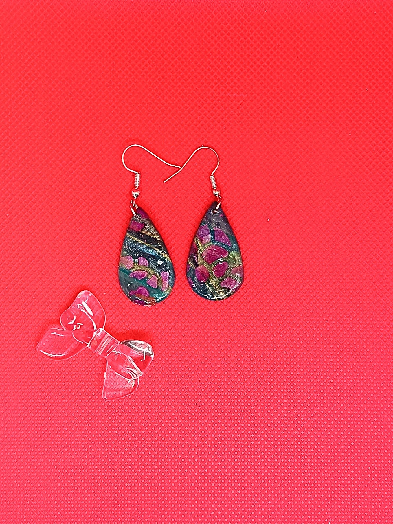 Korvakorut on FIMO Soft polymeerimassaa, joka on päällystetty UV RESINILLÄ. Etupuolella kuviointia, joka on värjätty pigmentti jauheella. Korussa hopeoitu koukku. Nikkelitön ja allergiatestattu. Tuotteella ilmainen toimitus.