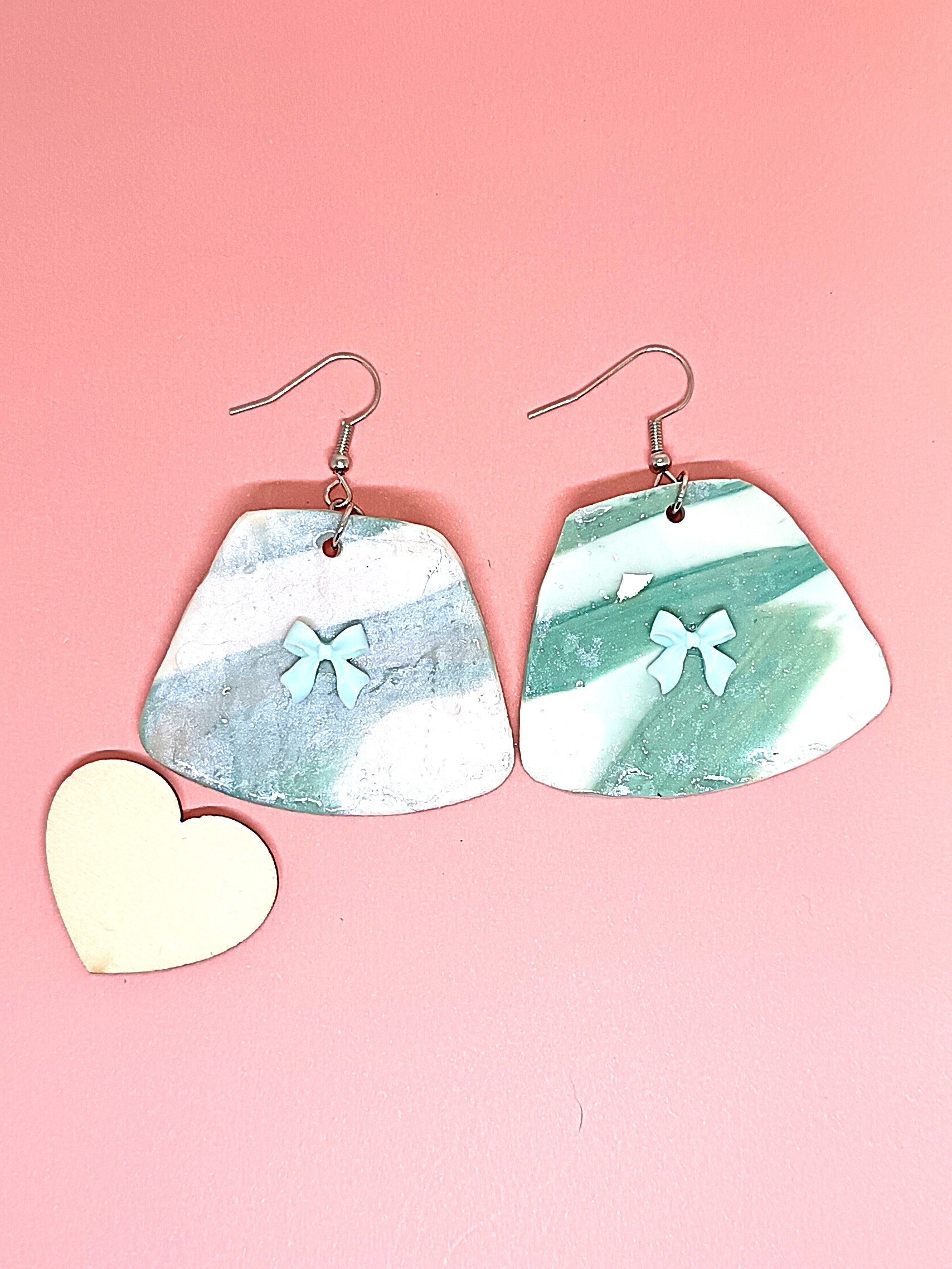 Korvakorut on FIMO Soft polymeerimassaa, joka on päällystetty UV RESINILLÄ. Molemmilla puolilla pienet rusetit koristeena. Korussa hopeoitu koukku. Nikkelitön ja allergiatestattu. Tuotteella ilmainen toimitus.