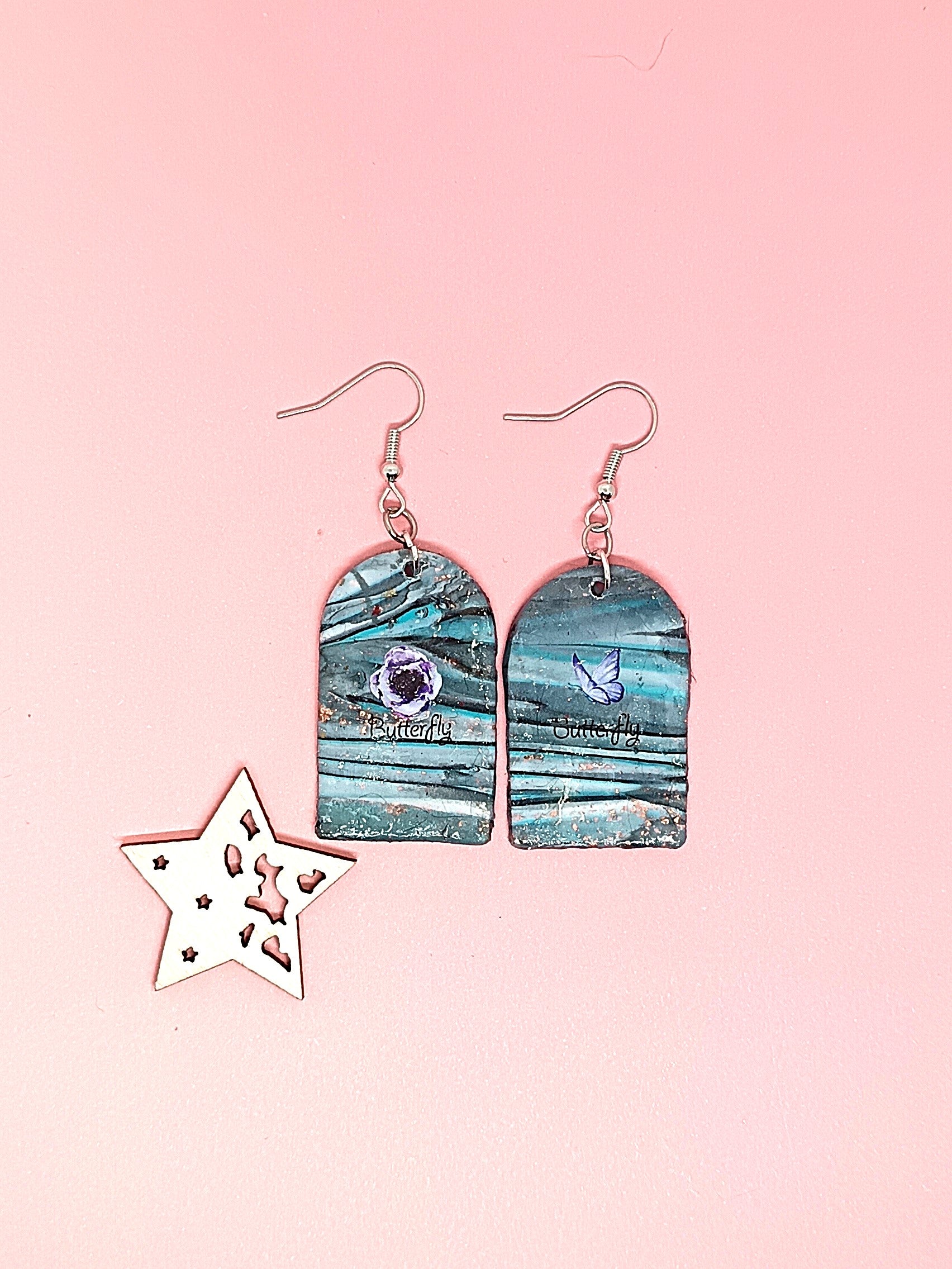 Korvakorut on FIMO Soft polymeerimassaa, joka on päällystetty UV RESINILLÄ. Etupuolella tarrat. Korussa hopeoitu koukku. Nikkelitön ja allergiatestattu. Tuotteella ilmainen toimitus.