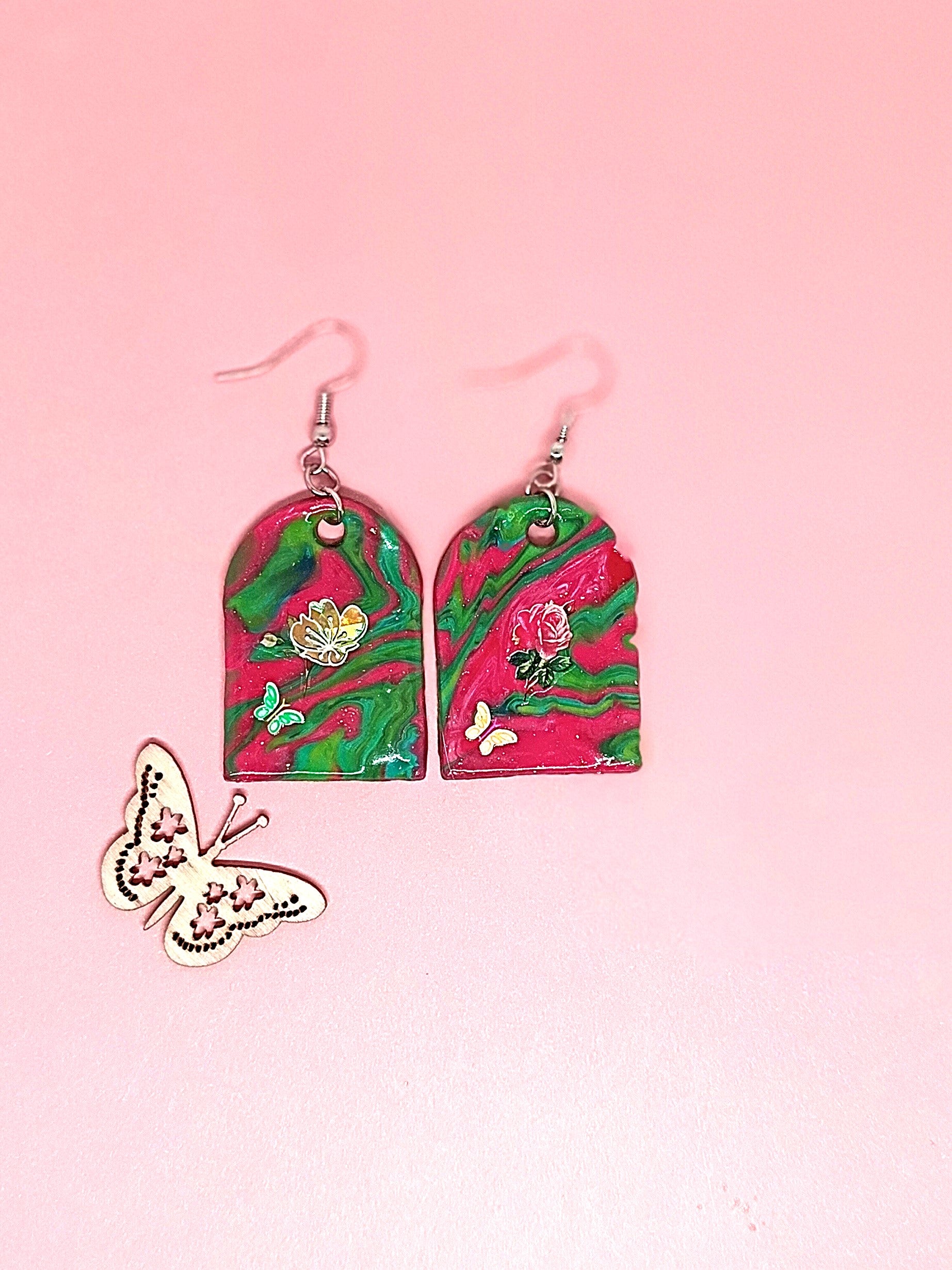 Korvakorut on FIMO Soft polymeerimassaa, joka on päällystetty UV RESINILLÄ. Molemmilla puolilla tarrat. Korussa hopeoitu koukku. Nikkelitön ja allergiatestattu. Tuotteella ilmainen toimitus.