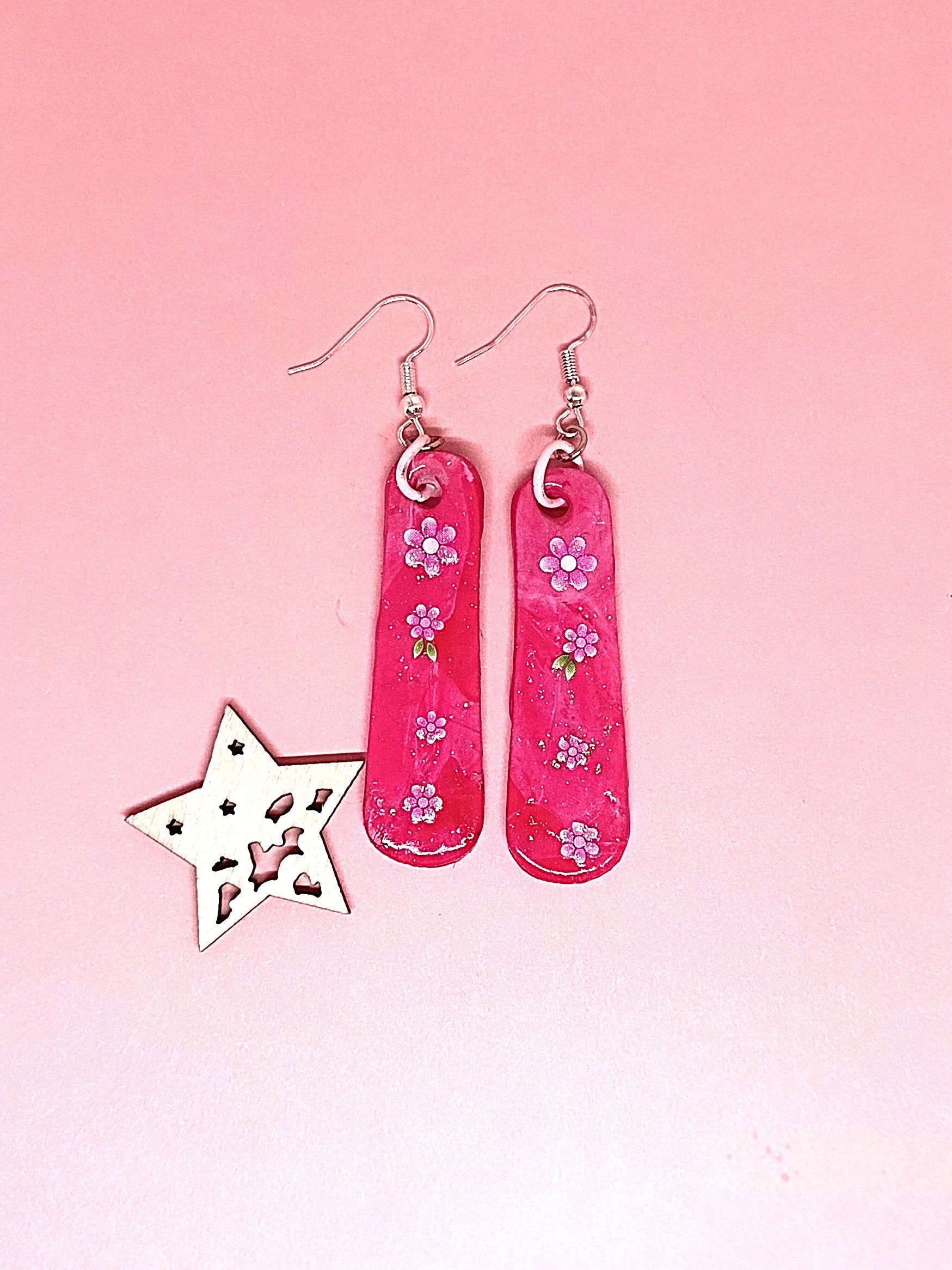 Korvakorut on FIMO Soft polymeerimassaa, joka on päällystetty UV RESINILLÄ. Molemmilla puolilla tarroja. Korussa hopeoitu koukku. Nikkelitön ja allergiatestattu. Tuotteella ilmainen toimitus.