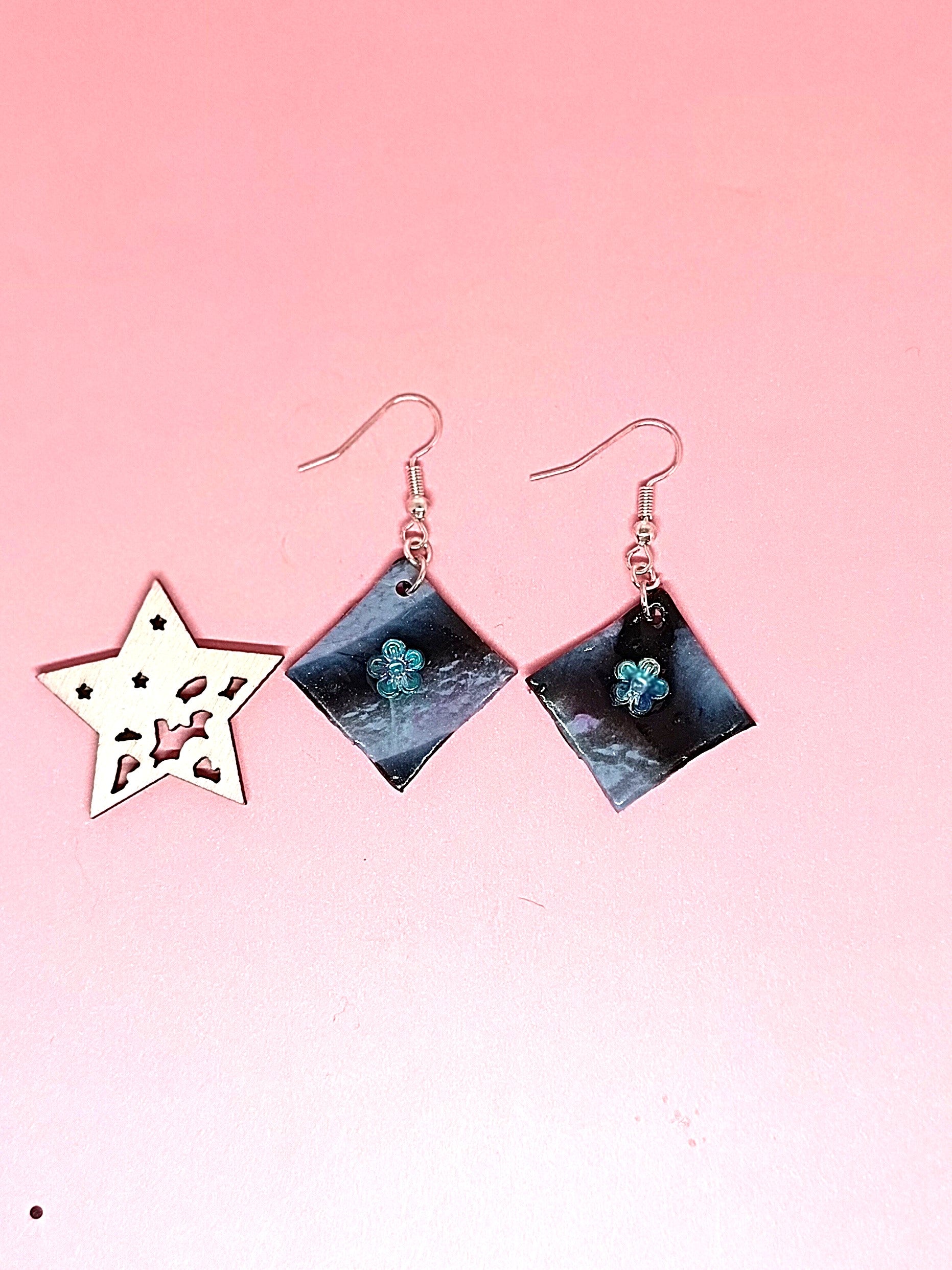 Korvakorut on FIMO Soft polymeerimassaa, joka on päällystetty UV RESINILLÄ. Etupuolella pieni kukkakoriste. Korussa hopeoitu koukku. Nikkelitön ja allergiatestattu. Tuotteella ilmainen toimitus.