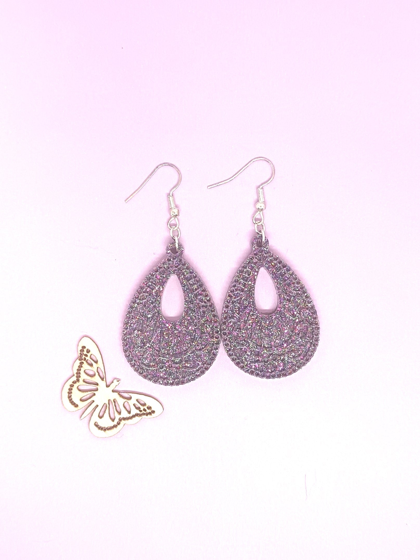 Koruna on GLOREXIN kidehartsia. Korut on violetit ja seassa on glitteriä. Etupuolella kuviointia. Korussa hopeoitu koukku. Nikkelitön ja allergiatestattu. Tuotteella ilmainen toimitus.
