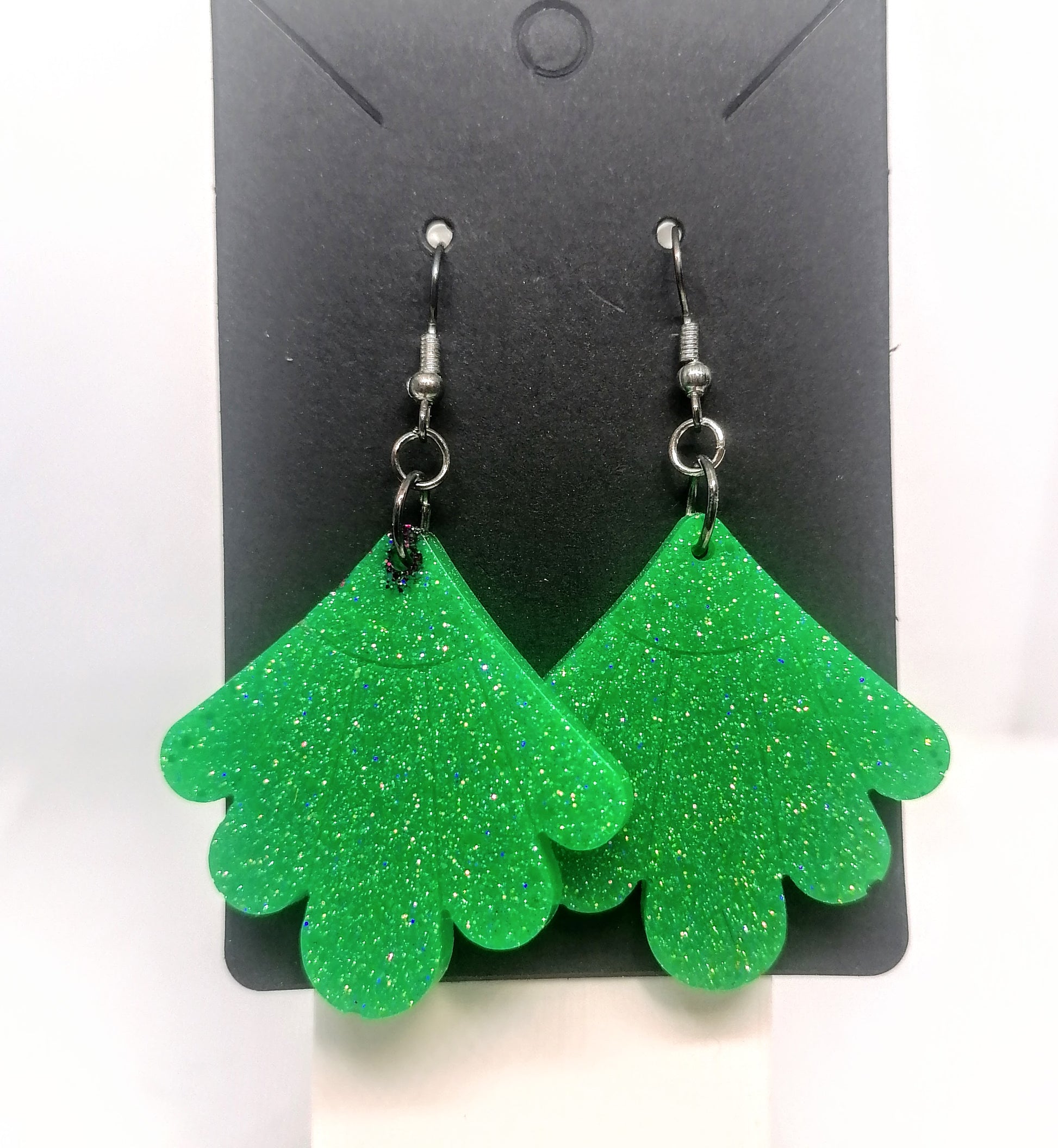 Hopeanvärinen rauta koukkukorvakoru. Riipus on glorexin kidehartsia. Riipus on värjätty vaaleanvihreäksi. Seassa on glitteriä. Tuotteella ilmainen toimitus. (Toisessa korvakorussa on pieni lila kohta)