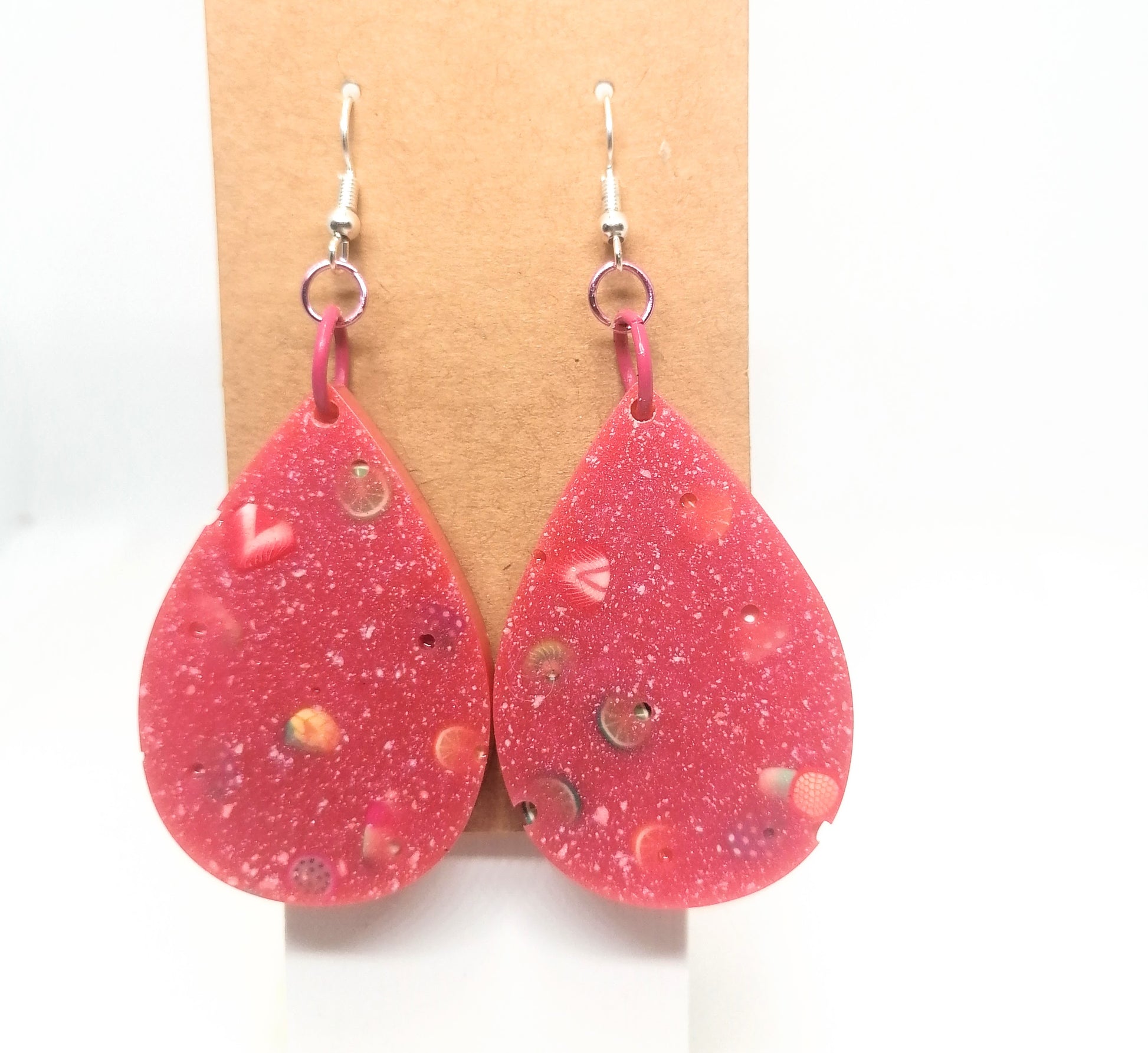 Hopeoitu rauta koukkukorvakoru. Riipus on glorexin kidehartsia, on värjätty pinkiksi. Etupuolella on koristeita. Tuotteella ilmainen toimitus.