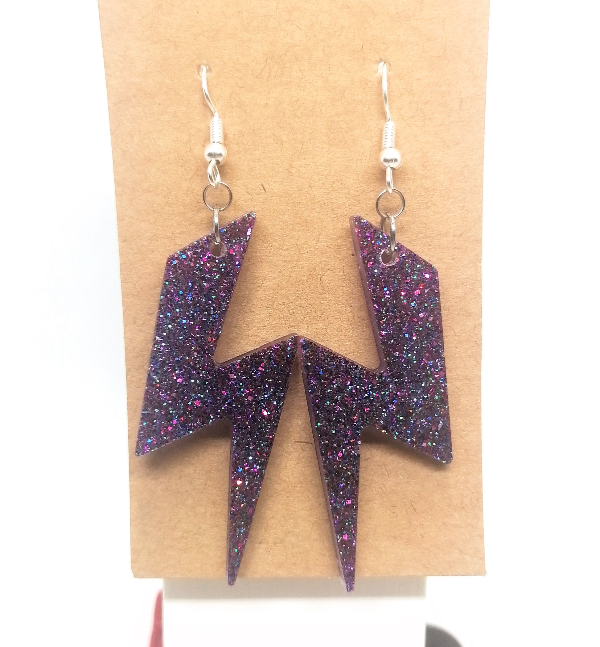 Hopeoitu rauta koukkukorvakoru. Riipus on glorexin kidehartsia, on värjätty vioöetiksi. Seassa on glitteriä. Tuotteella ilmainen toimitus.