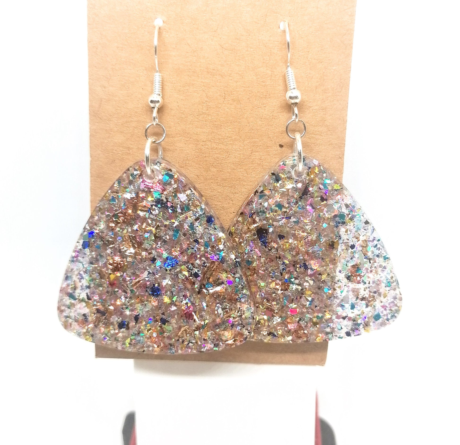 Hopeoitu rauta koukkukorvakoru. Riipus on glorexin kidehartsia, on kirkkaan väristä,. seassa on lehtikultaa eriväreissä. Tuotteella ilmainen toimitus.