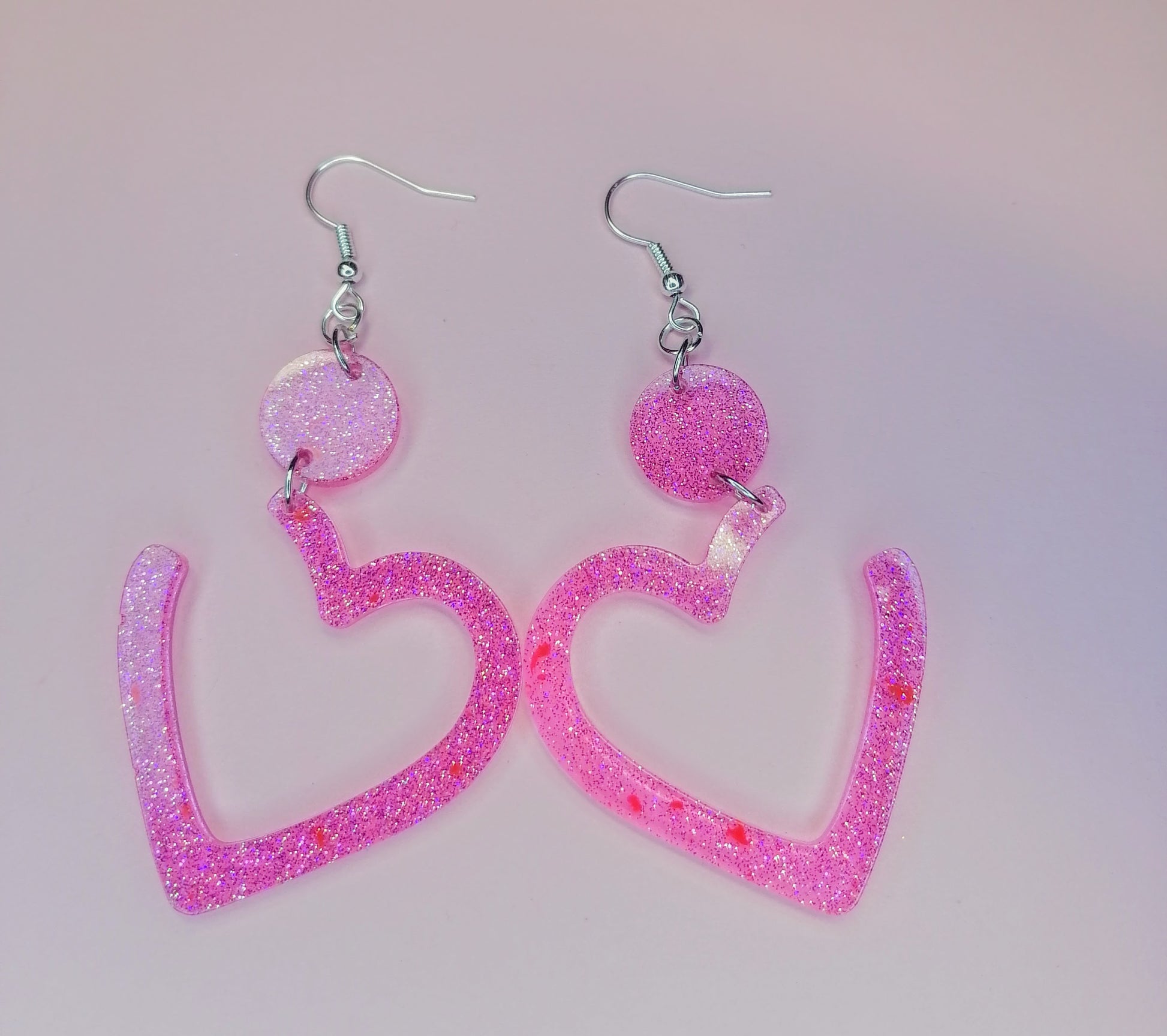 Hopeoitu rauta koukkukorvakoru. Riipus osa on glorexin kidehartsia. Kidehartsi on värjätty vaalean pinkkiin sävyyn, väri on läpinäkyvä. Seassa myös glitteriä eriväreissä. Tuotteella ilmainen toimitus