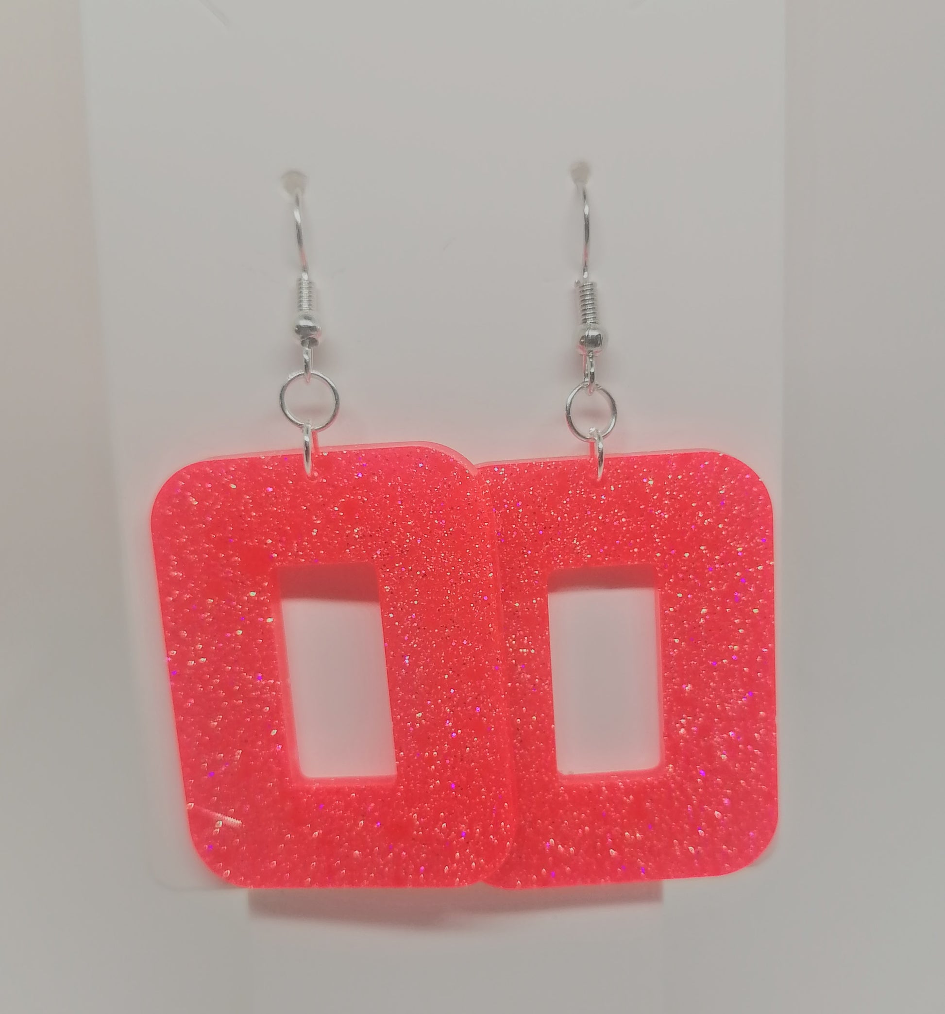 Hopeanvärinen rauta koukkukorvakoru. Riipus on glorexin kidehartsia, joka on värjätty pinkin sävyyn. Seassa myös glitteriä ja hilettä. Tuotteella ilmainen toimitus. Kuva vääristää väriä.