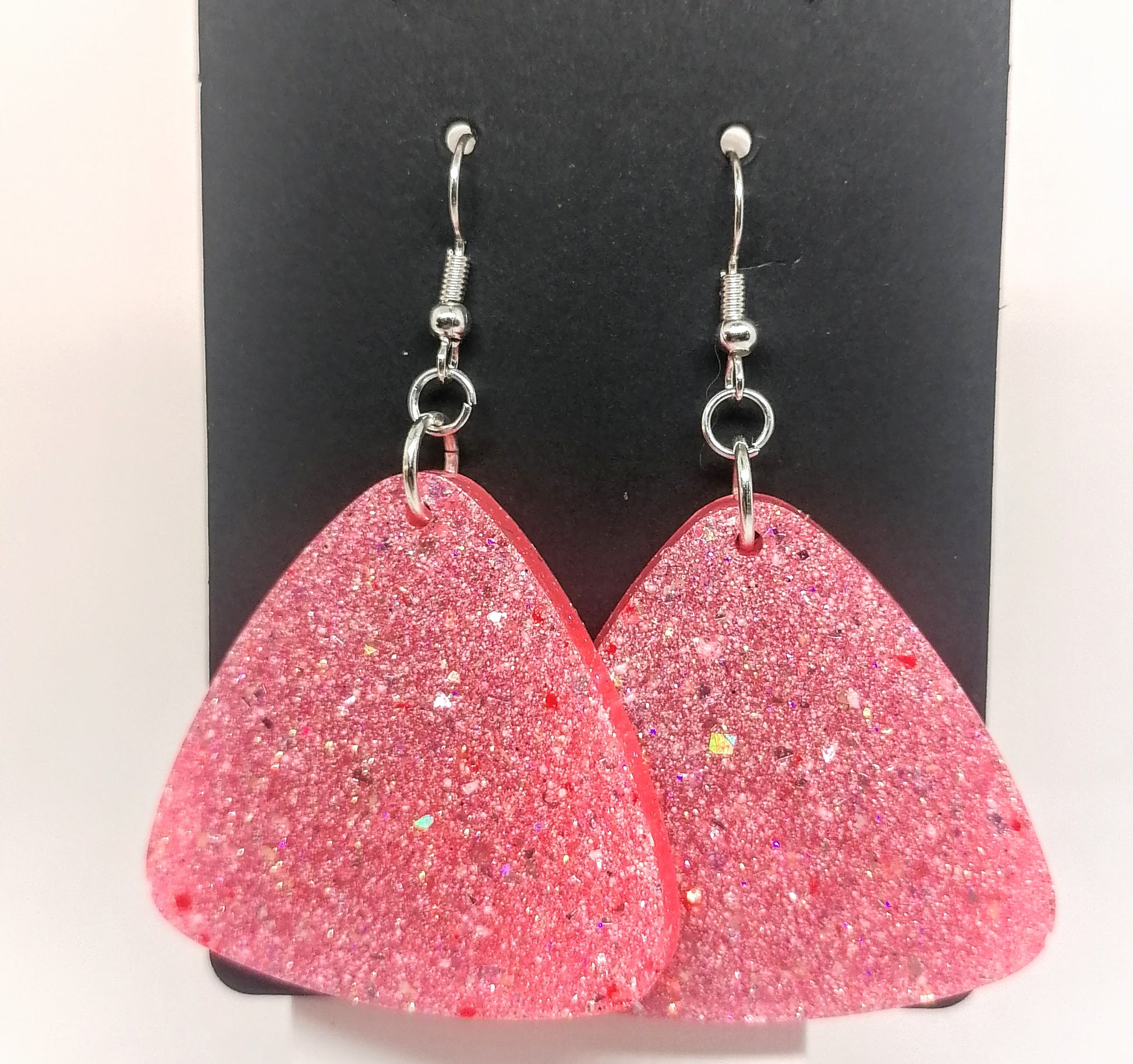 Hopeanvärinen rauta koukkukorvakoru. Riipus on glorexin kidehartsia, joka on värjätty marjapuuron sävyyn. Seassa myös glitteriä ja hilettä. Tuotteella ilmainen toimitus.
