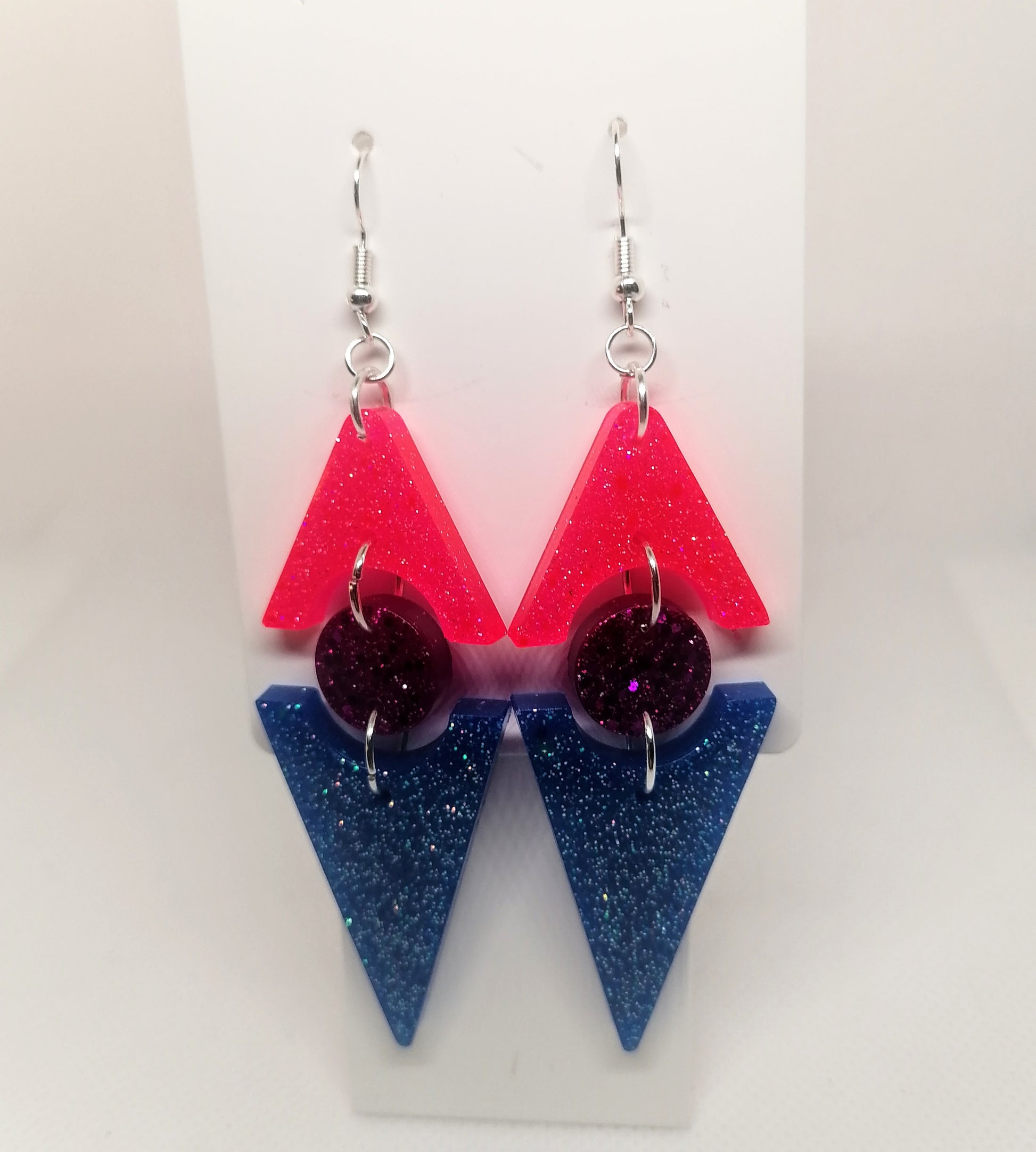 Hopeanvärinen rauta koukkukorvakoru. Riipus on glorexin kidehartsia. Riipus on värjätty pinkiksi, lilaksi ja siniseksi. Seassa on glitteriä. Tuotteella ilmainen toimitus. Kuva hieman vääristää väriä.