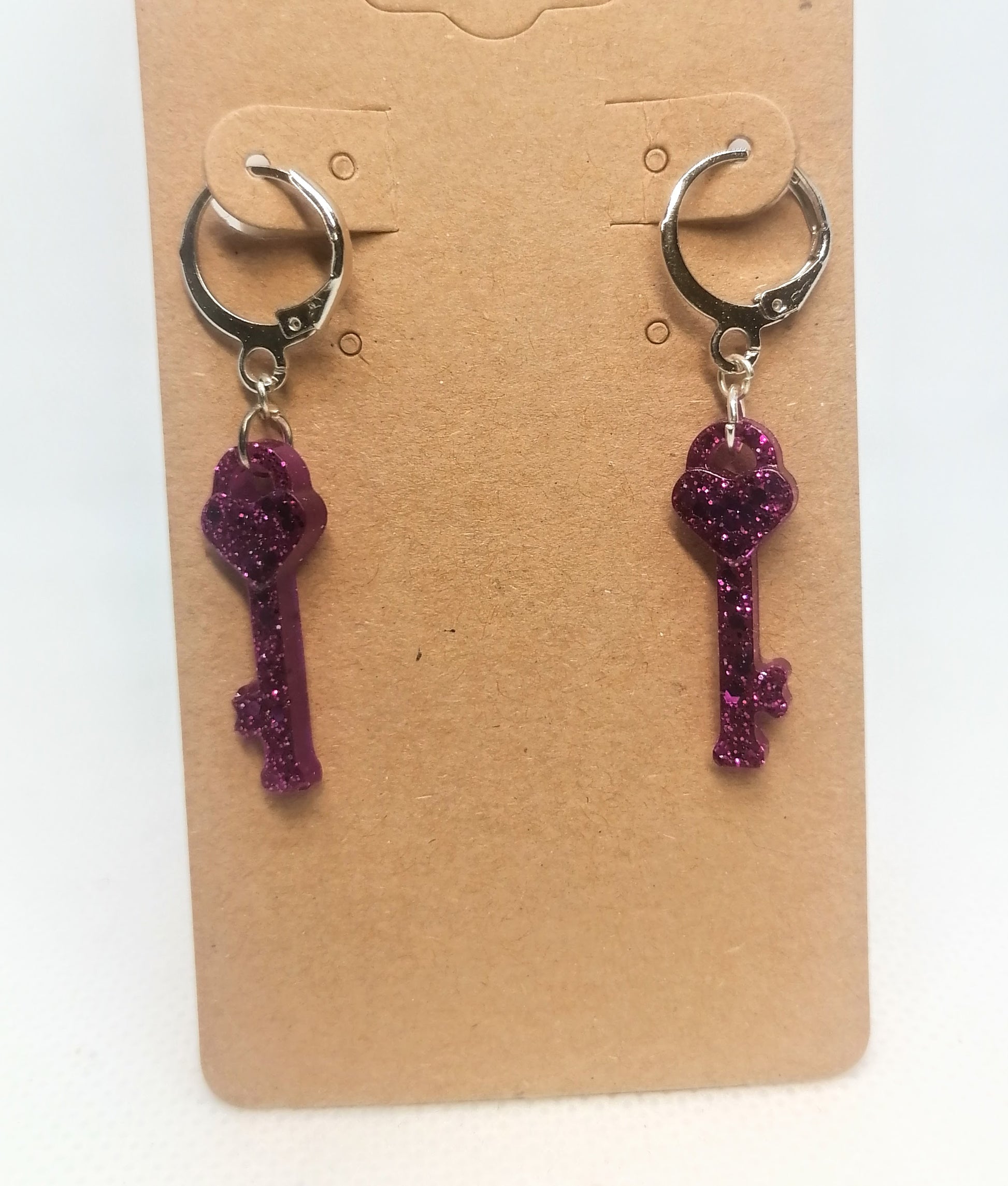 Hopeanvärinen rauta rengaskorvakoru. Riipus on glorexin kidehartsia. Riipus on värjätty violetiksi. Seassa on glitteriä. Tuotteella ilmainen toimitus.