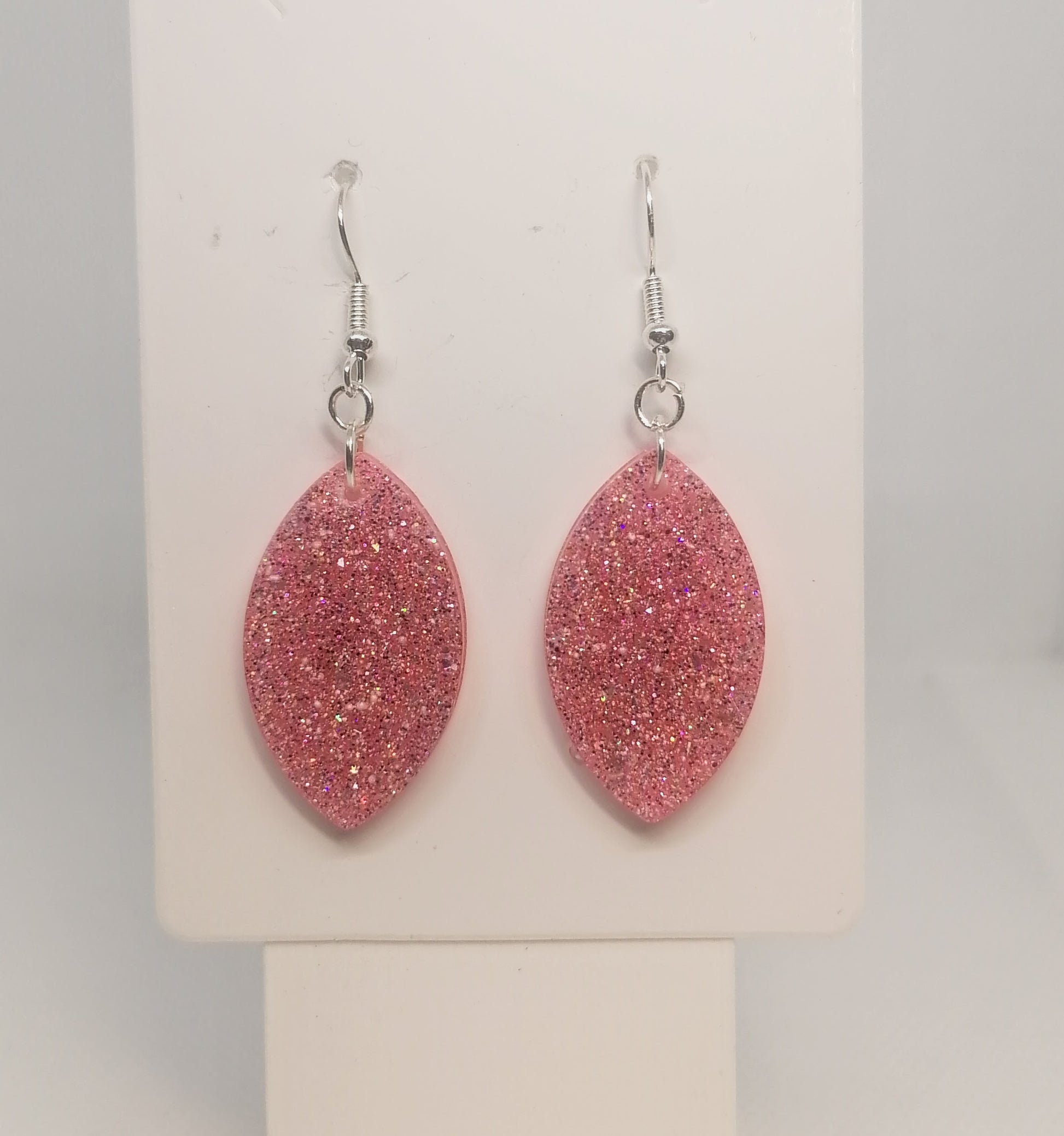 Hopeanvärinen rauta koukkukorvakoru. Riipus on glorexin kidehartsia. Riipus on värjätty pinkin sävyyn. Seassa on glitteriä. Tuotteella ilmainen toimitus.