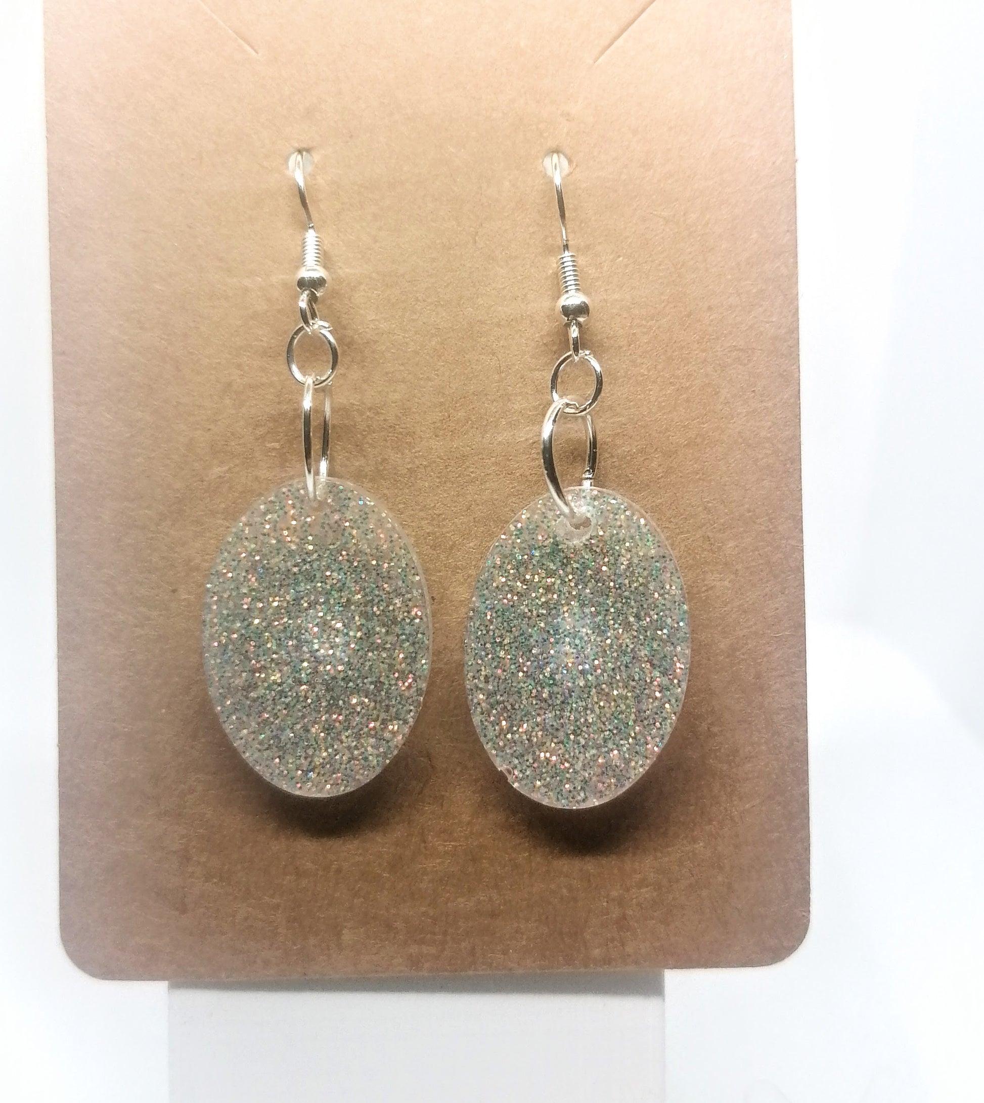 Hopeanvärinen rauta koukkukorvakoru. Riipus on glorexin kidehartsia. Riipus on harmaan värinen. Seassa myös glitteriä. Tuotteella ilmainen toimitus.