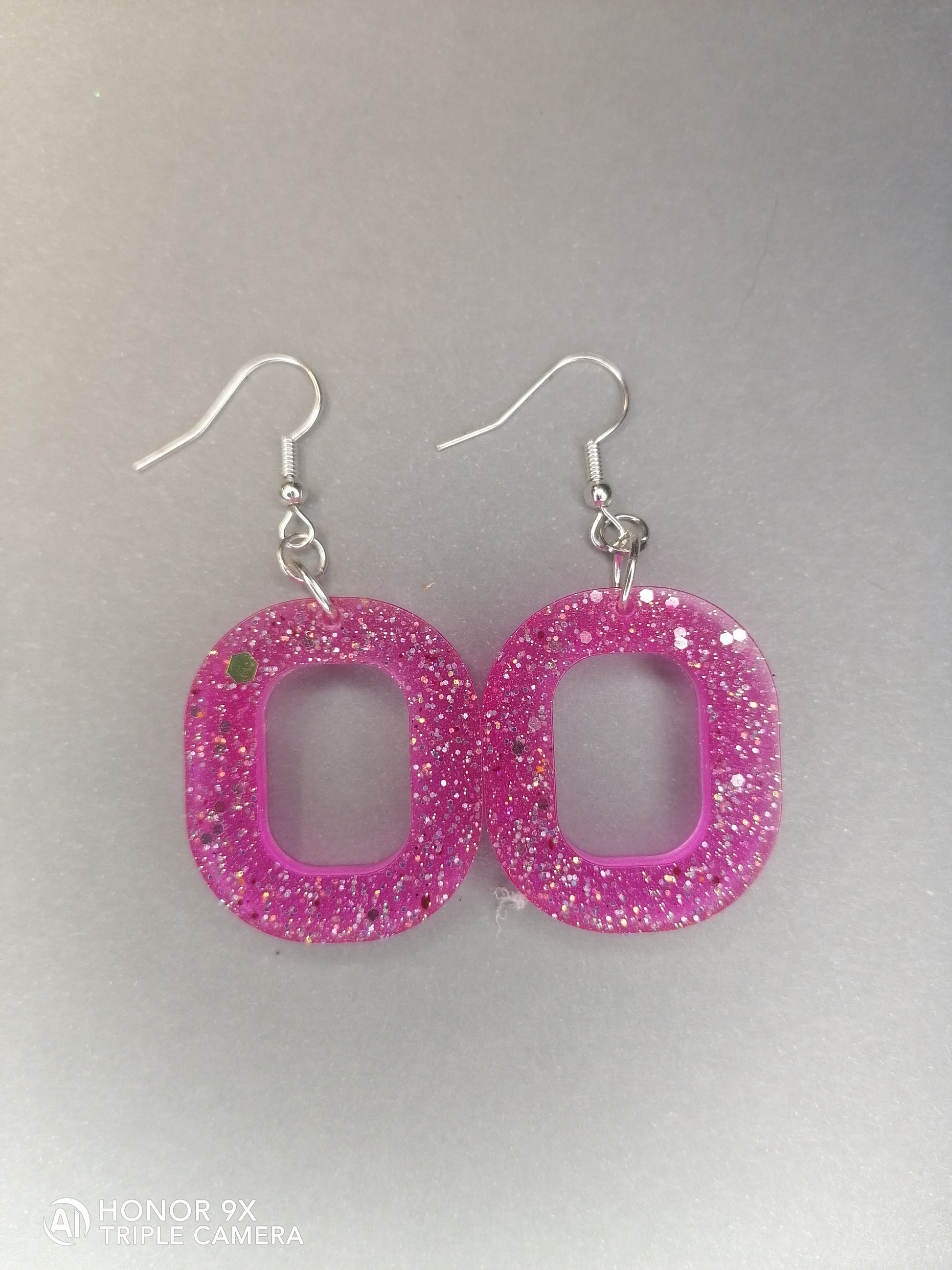 Hopeoitu rauta koukkukorvakoru. Riipus osa on glorexin kidehartsia, seassa on glitteriä. Kidehartsi on värjätty pinkin sävyyn. Tuotteella ilmainen toimitus