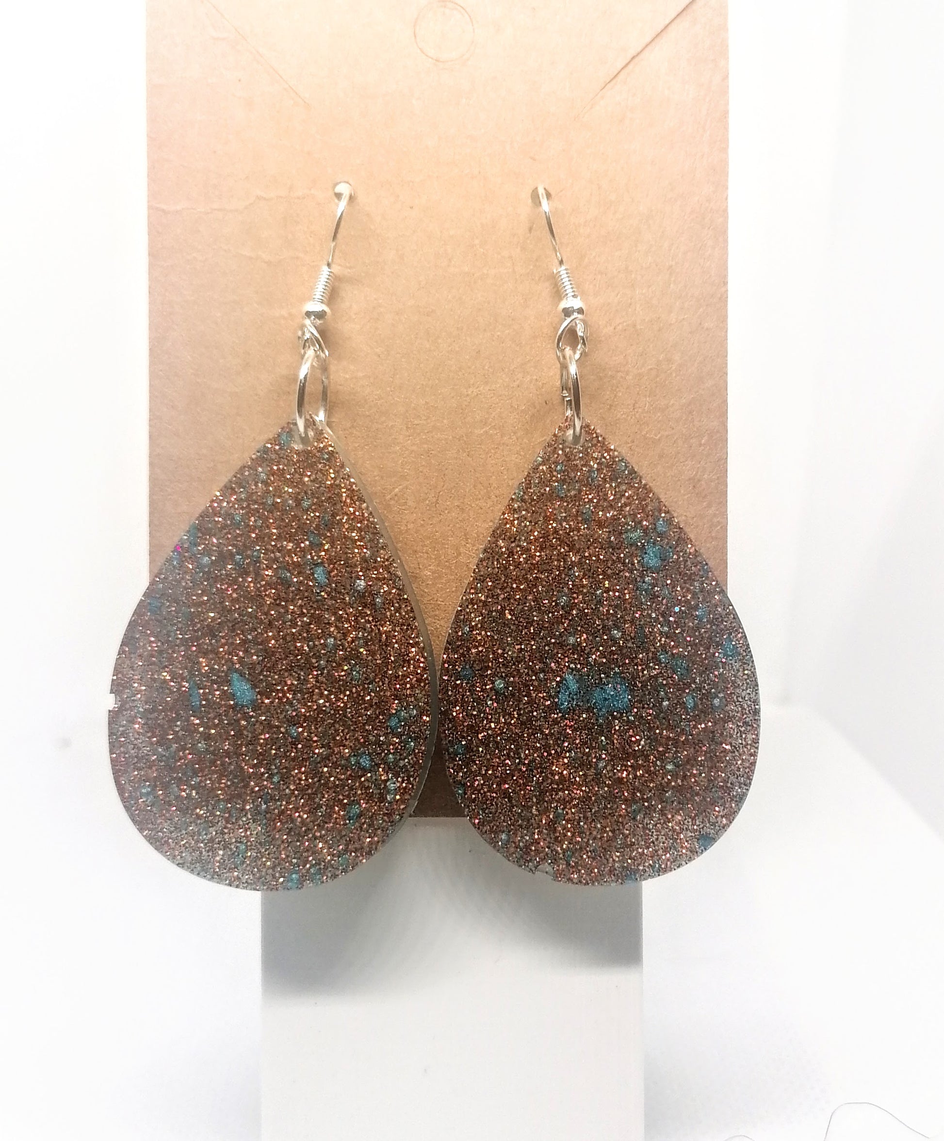 Hopeanvärinen rauta koukkukorvakoru. Riipus on glorexin kidehartsia. Riipus on värjätty turkoosin sävyyn. Seassa myös glitteriä. Tuotteella ilmainen toimitus.