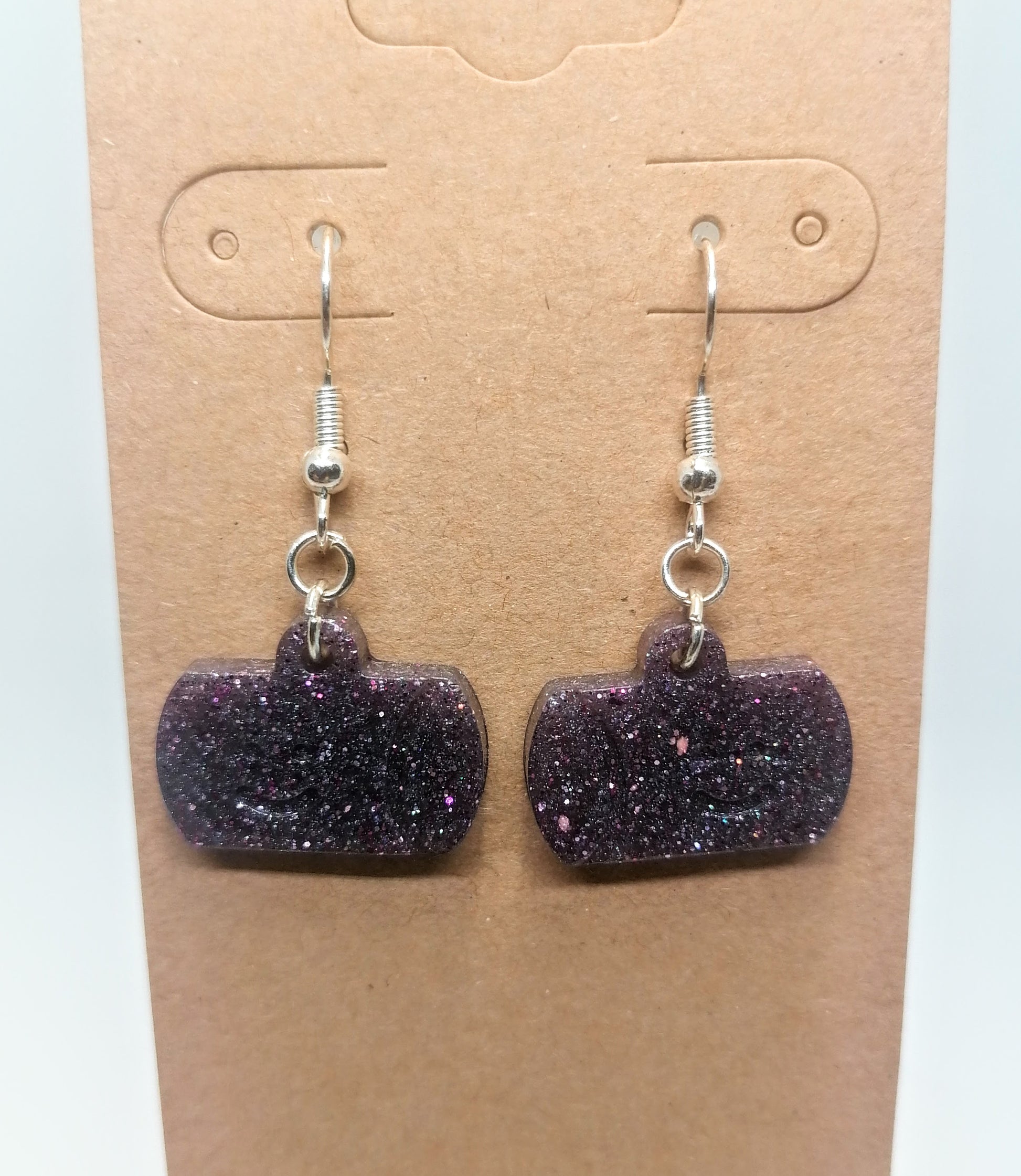 Hopeanvärinen rauta koukkukorvakoru. Riipus on glorexin kidehartsia. Riipus on värjätty violetiksi. Seassa myös glitteriä. Tuotteella ilmainen toimitus.