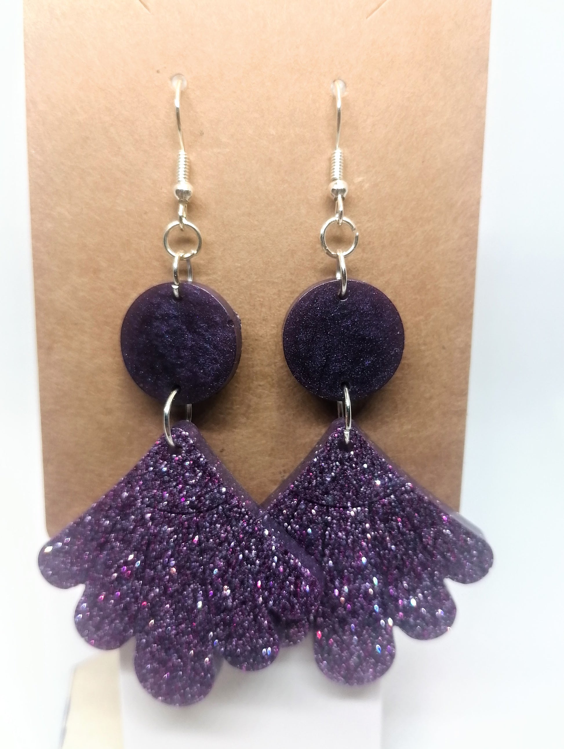 Hopeanvärinen rauta koukkukorvakoru. Riipus on glorexin kidehartsia. Riipus on värjätty violetiksi. Seassa myös glitteriä. Tuotteella ilmainen toimitus.