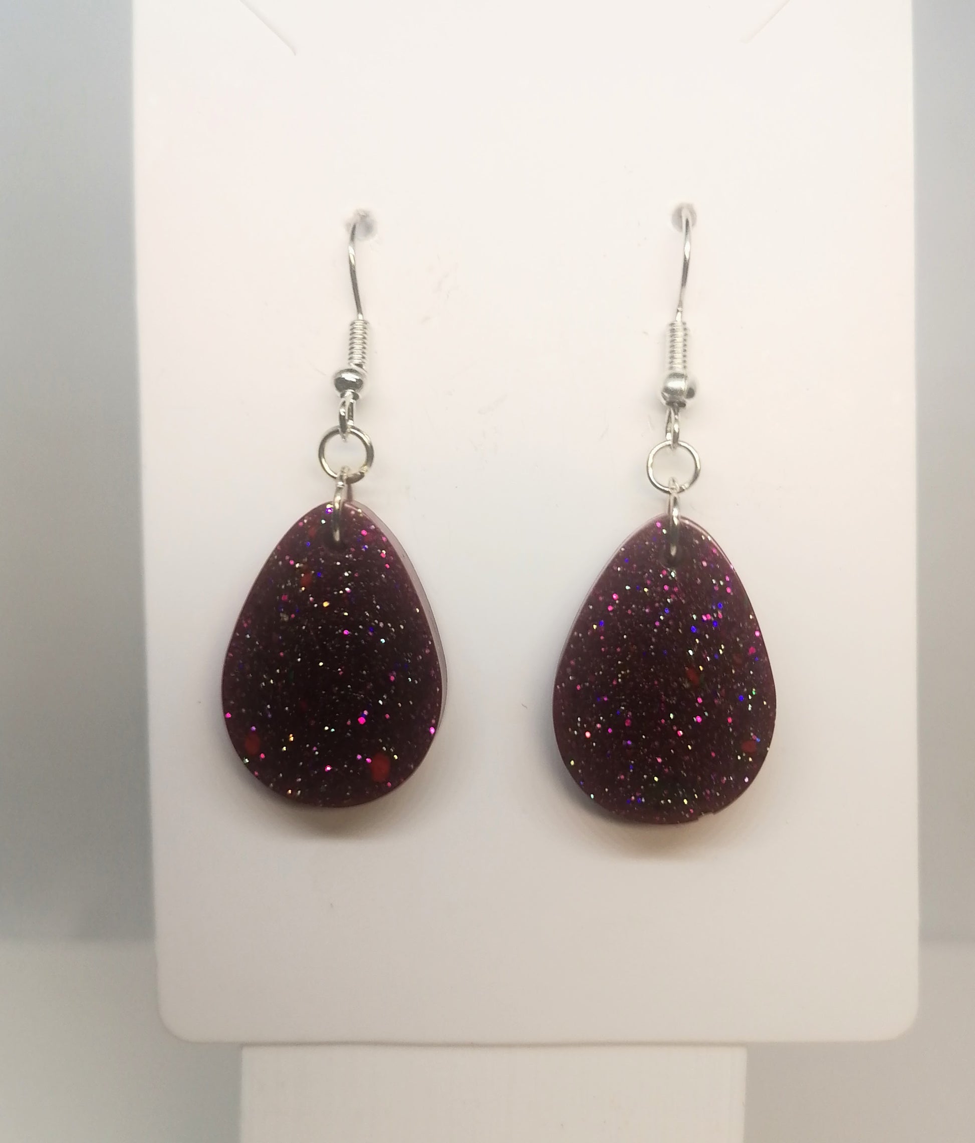 Hopeanvärinen rauta koukkukorvakoru. Riipus on glorexin kidehartsia. Riipus on värjätty puna-ruskeaksi. Seassa myös glitteriä. Tuotteella ilmainen toimitus.