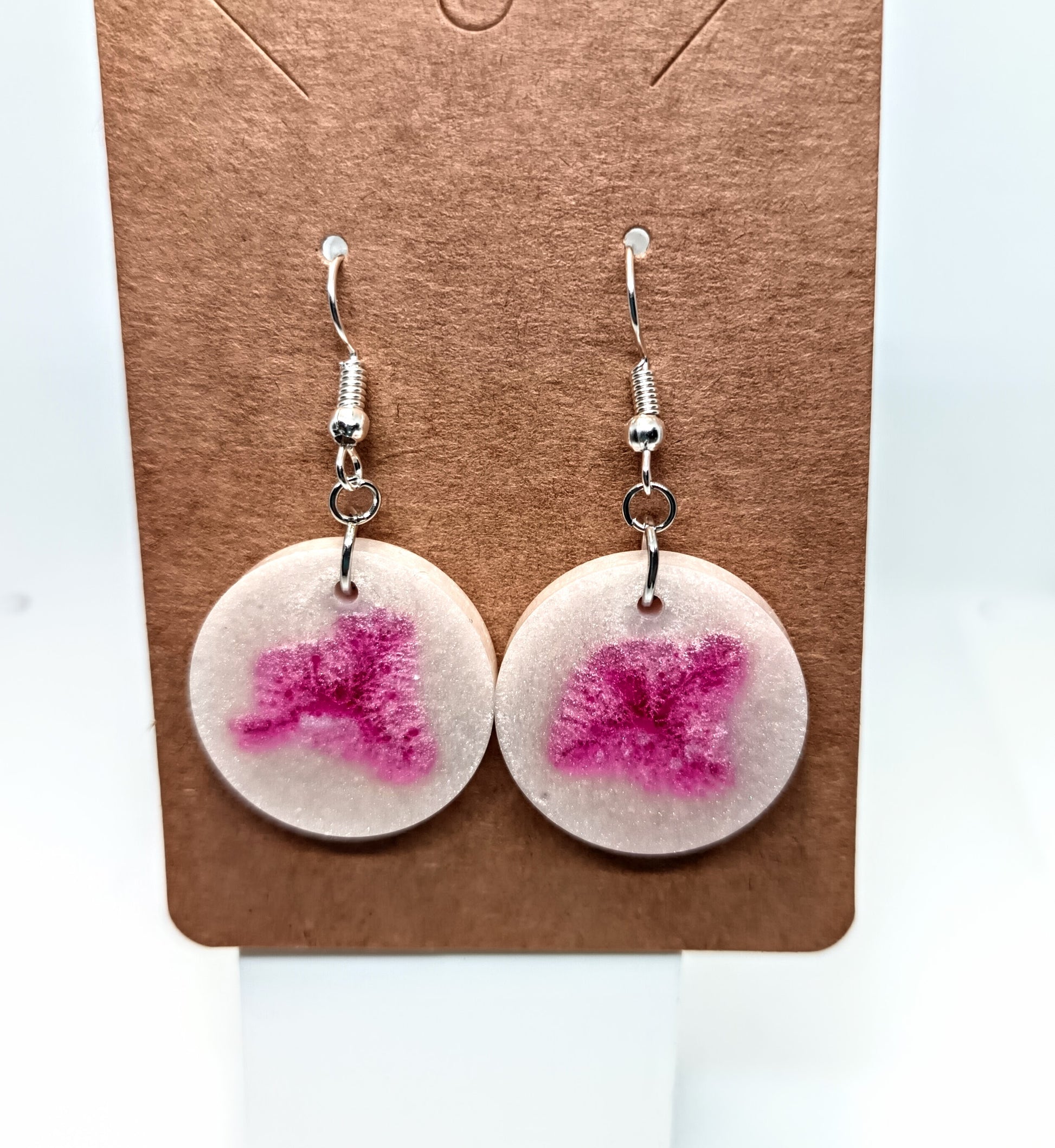 Hopeanvärinen rauta koukkukorvakoru. Riipus on glorexin kidehartsia. Riipus on värjätty valkoisen sävyyn, jonka seassa on pinkkiä. Tuotteella ilmainen toimitus.