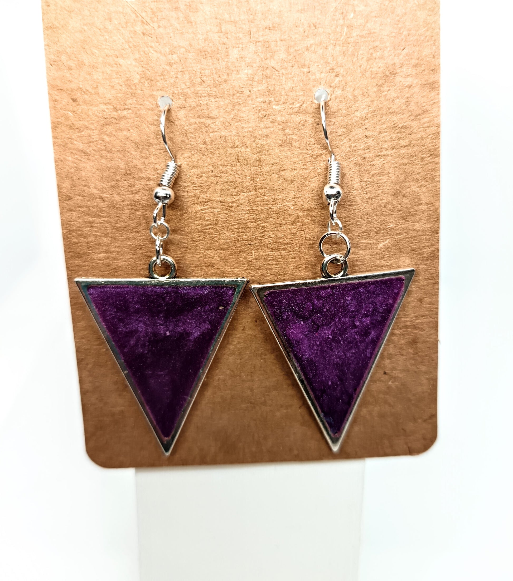 Hopeanvärinen rauta koukkukorvakoru. Riipus on glorexin kidehartsia, joka on tehty hopeanväriseen korupohjaan. Riipus on värjätty violetin sävyyn. Tuotteella ilmainen toimitus.