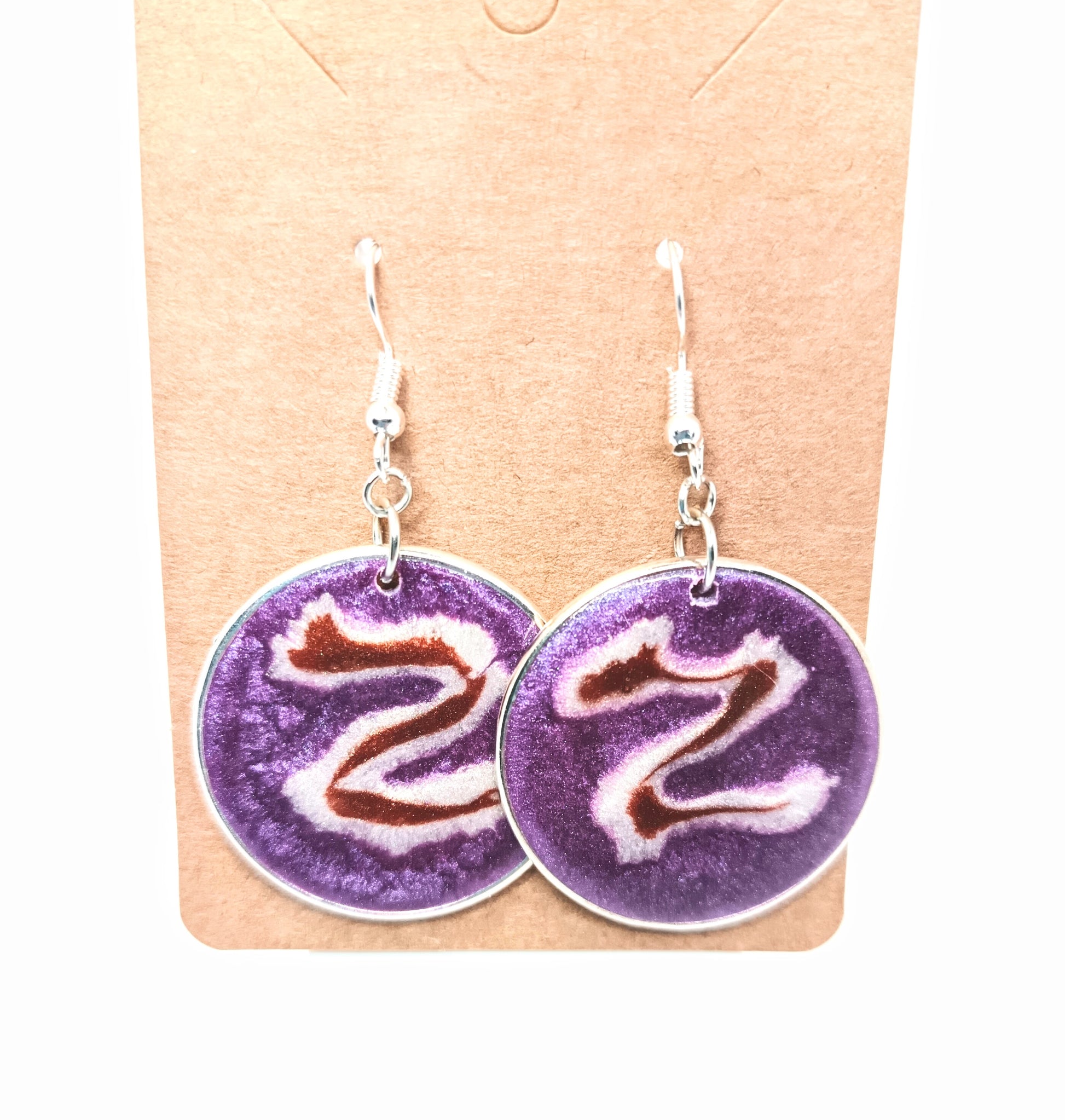 Hopeanvärinen rauta koukkukorvakoru. Riipus on glorexin kidehartsia. Koru on tehty hopeanväriseen korupohjaan. Riipus on värjätty violetksi, seassa myös valkoista ja ruskeanväristä hartsia. Tuotteella ilmainen toimitus.