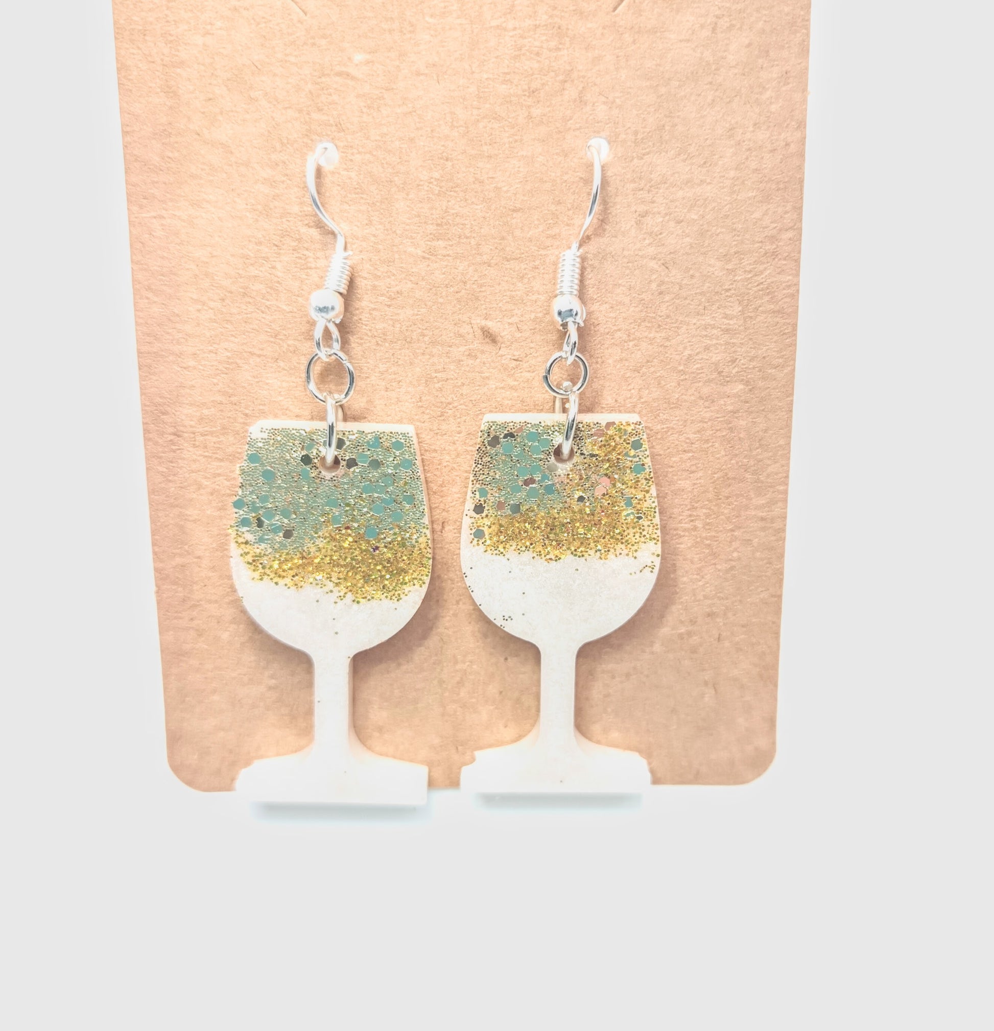 Hopeanvärinen rauta koukkukorvakoru. Riipus on glorexin kidehartsia. Riipus on värjätty valkoiseksi. Etupuolella glitteriä ja hilettä. Tuotteella ilmainen toimitus.