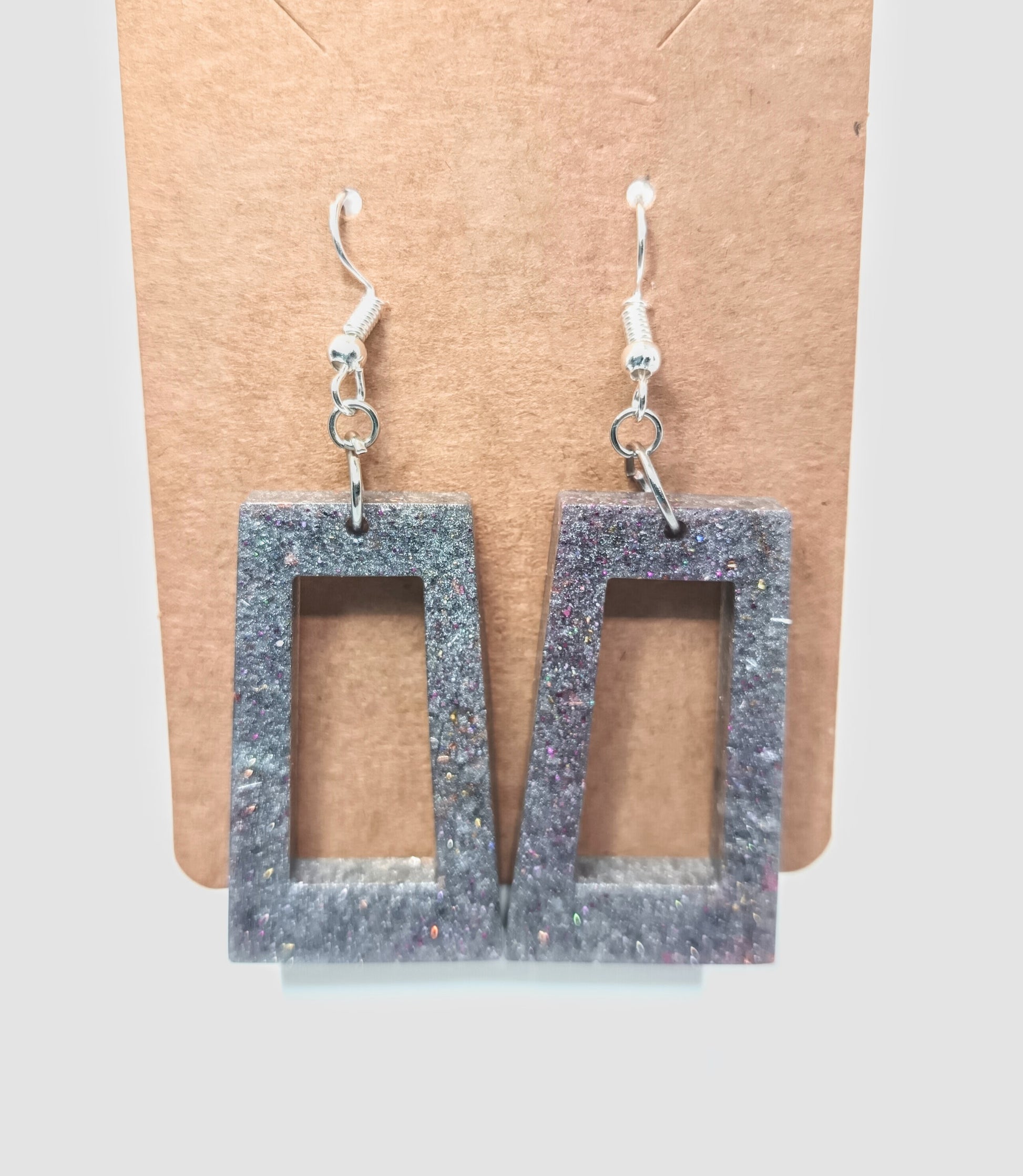 Hopeanvärinen rauta koukkukorvakoru. Riipus on glorexin kidehartsia. Riipus on värjätty harmaaksi Seassa myös glitteriä. Tuotteella ilmainen toimitus.