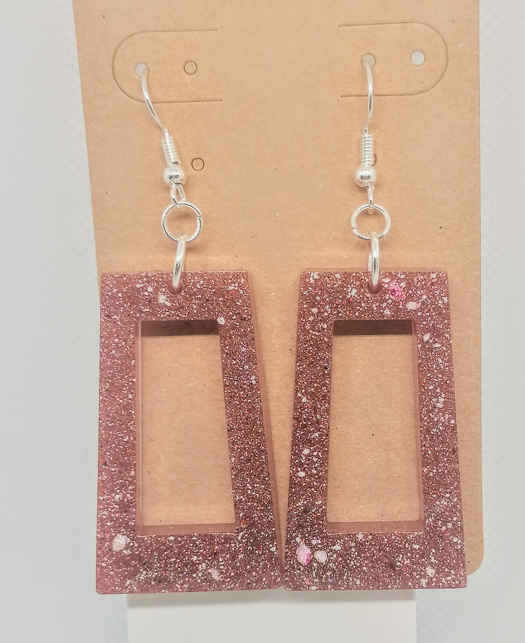 Hopeoitu rauta koukkukorvakoru. Riipus osa on glorexin kidehartsia. Kidehartsi on värjätty ruskean punaiseksi. Seassa myös glitteriä eriväreissä. Tuotteella ilmainen toimitus