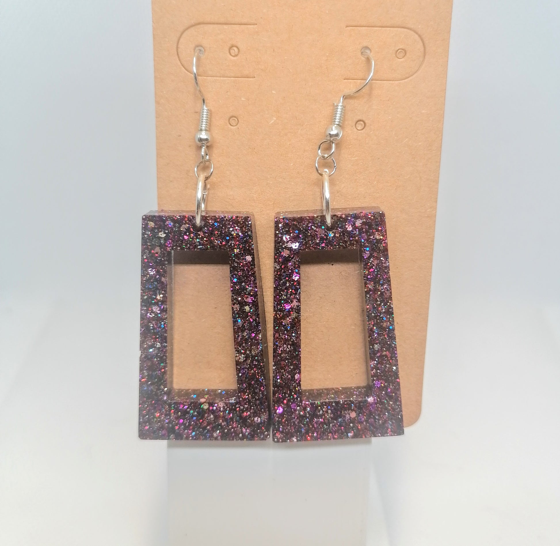 Hopeoitu rauta koukkukorvakoru. Riipus osa on glorexin kidehartsia. Kidehartsi on värjätty violetin sävyyn. Seassa myös glitteriä ja hilettä. Tuotteella ilmainen toimitus