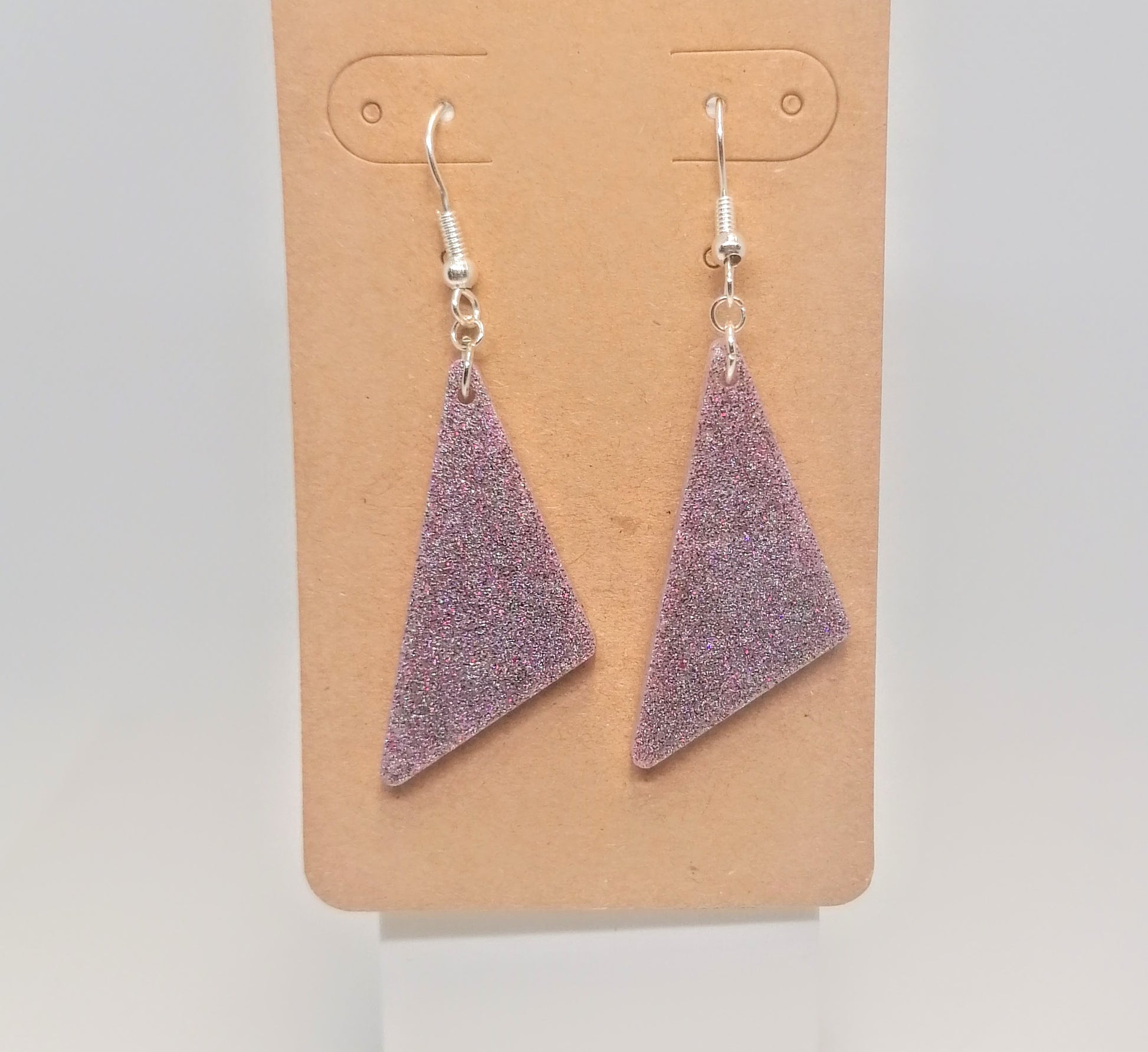 Hopeoitu rauta koukkukorvakoru. Riipus osa on glorexin kidehartsia. Kidehartsi on värjätty lilan sävyyn. Seassa myös glitteriä. Tuotteella ilmainen toimitus
