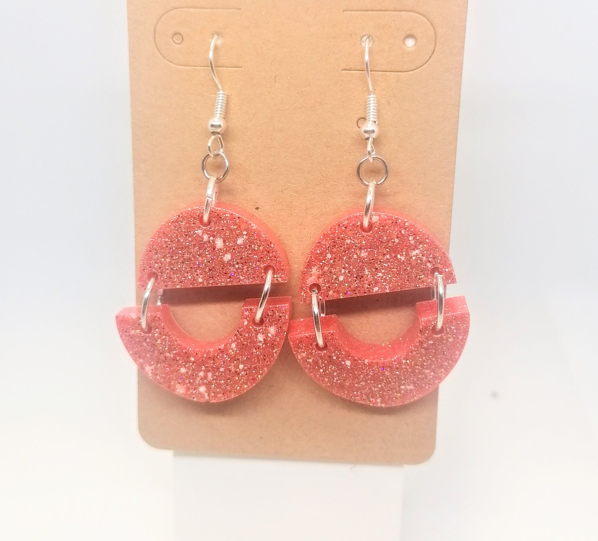 Hopeoitu rauta koukkukorvakoru. Riipus osa on glorexin kidehartsia. Kidehartsi on värjätty marjapuuron(puna-oranssin) sävyyn. Seassa myös glitteriä. Tuotteella ilmainen toimitus