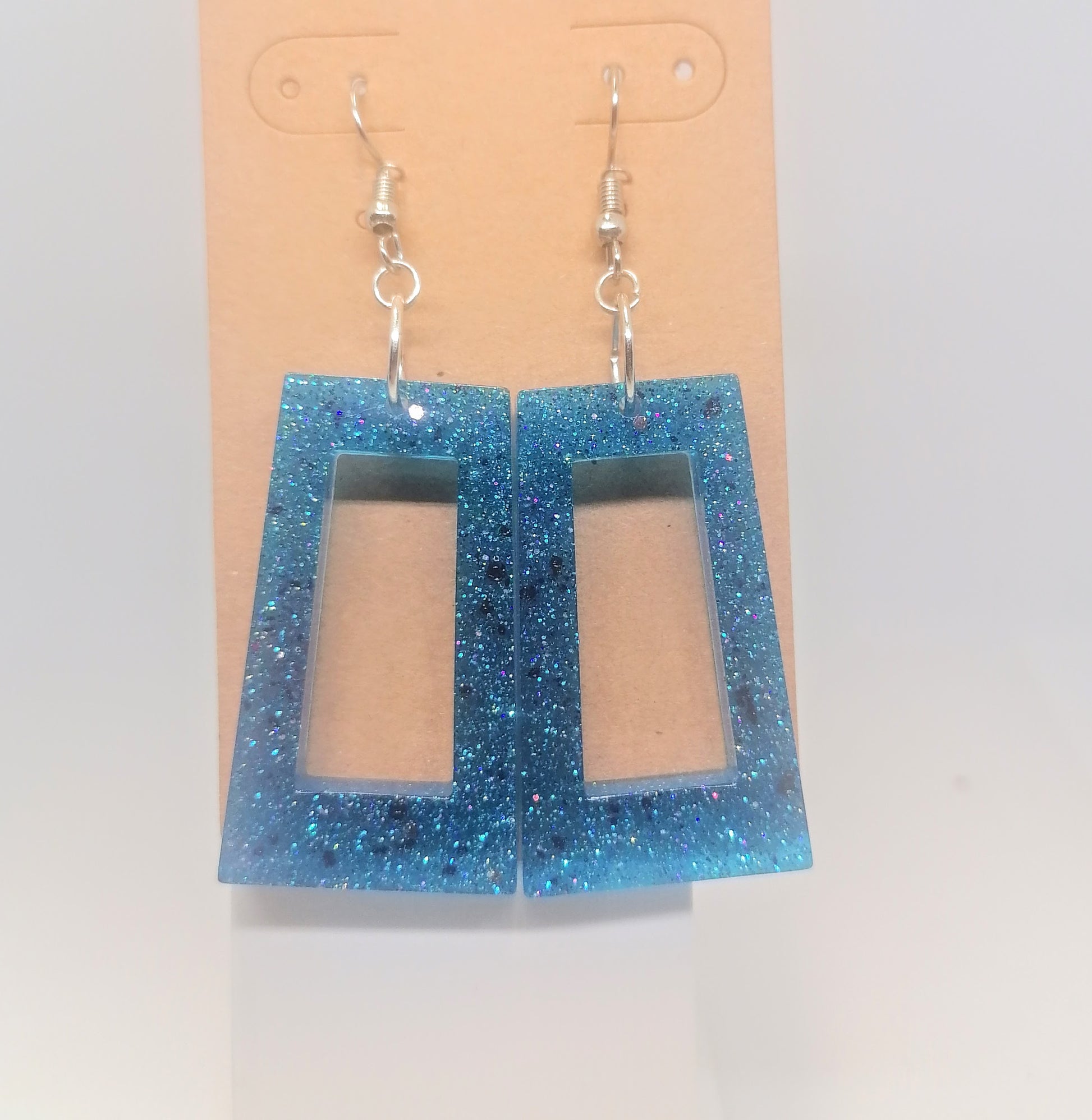 Hopeoitu rauta koukkukorvakoru. Riipus osa on glorexin kidehartsia. Kidehartsi on värjätty siniseksi(läpinäkyvä). Seassa myös glitteriä. Tuotteella ilmainen toimitus