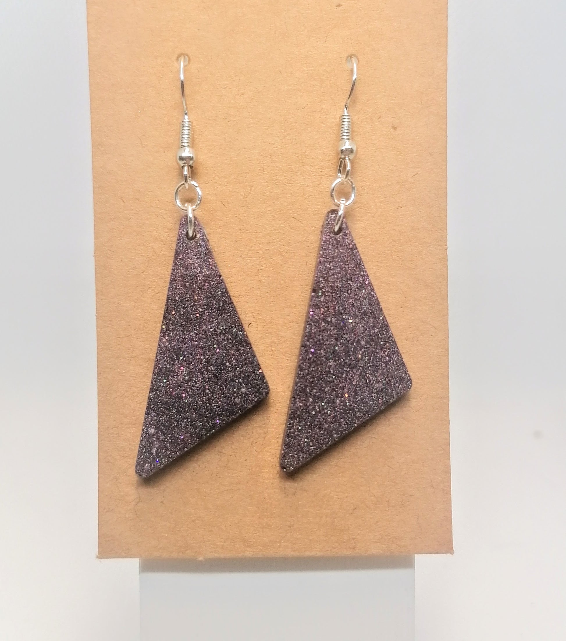 Hopeoitu rauta koukkukorvakoru. Riipus osa on glorexin kidehartsia. Kidehartsi on värjätty tumman lilan/harmaan väriseksi. Seassa on myös glitteriä. Tuotteella ilmainen toimitus