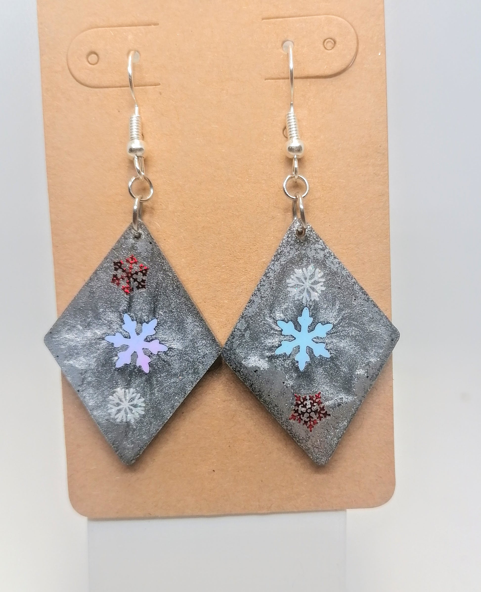 Hopeoitu rauta koukkukorvakoru. Riipus osa on glorexin kidehartsia. Kidehartsi on värjätty tumman harmaan väriseksi. Pintaan on kovetettu tarroja etupuolelle. Seassa on myös glitteriä. Tuotteella ilmainen toimitus
