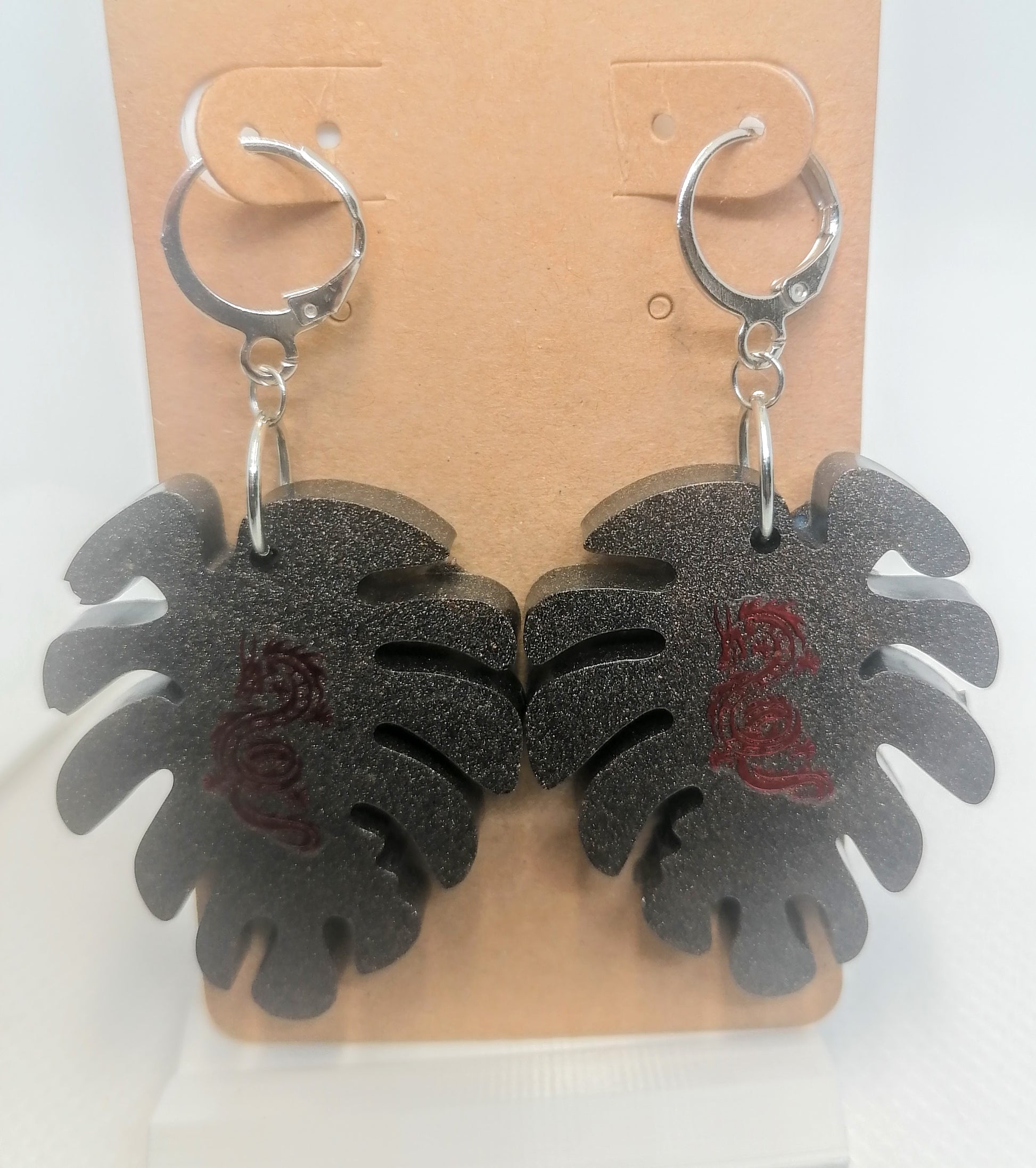 Hopeoitu rauta rengas korvakoru. Riipus osa on glorexin kidehartsia. Kidehartsi on värjätty tumman ruskean väriseksi. Seassa on myös glitteriä. Etupuolella on myös tarra. Tuotteella ilmainen toimitus