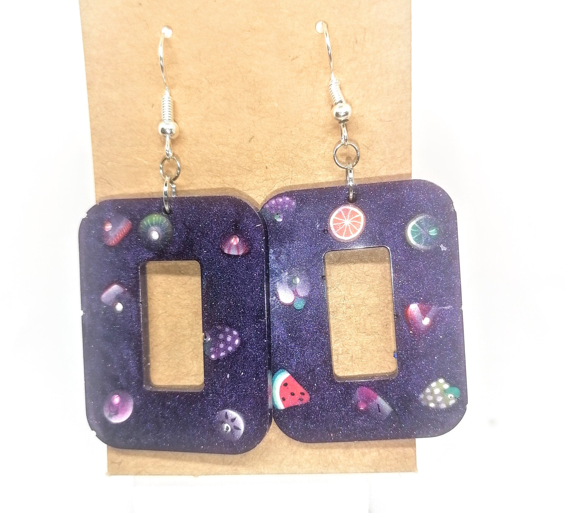 Hopeoitu rauta koukkukorvakoru. Riipus osa on glorexin kidehartsia. Kidehartsi on värjätty tumman harmaan väriseksi. Etupuolella on koristeita. Seassa on myös glitteriä. Tuotteella ilmainen toimitus