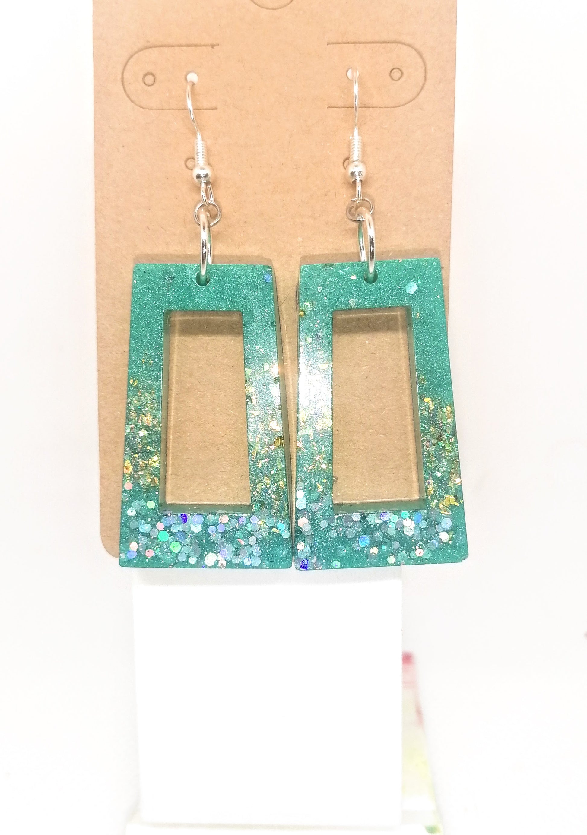 Hopeoitu rauta koukkukorvakoru. Riipus osa on glorexin kidehartsia. Kidehartsi on värjätty mustan ja violetin sävyiseksi. Etupuolella on hilettä eriväreissä. Seassa on myös glitteriä. Tuotteella ilmainen toimitus
