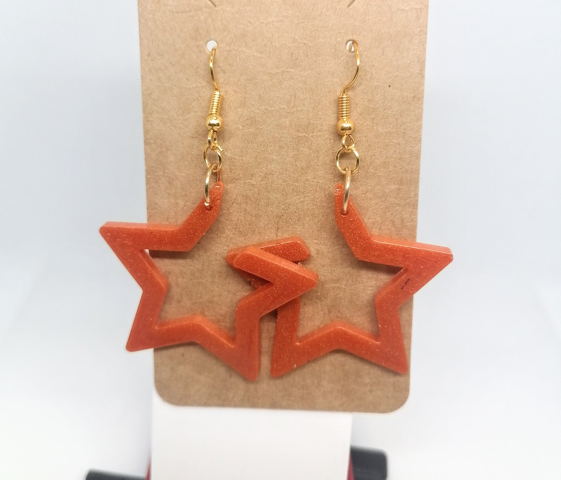 Kullanvärinen rauta koukkukorvakoru. Riipus osa on glorexin kidehartsia. Kidehartsi on värjätty oranssin väriseksi. Seassa on myös glitteriä. Tuotteella ilmainen toimitus