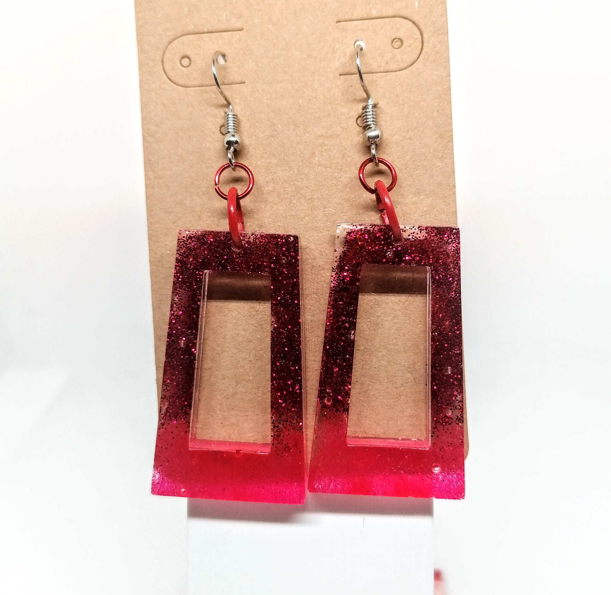 Hopeoitu rauta koukkukorvakoru. Riipus osa on glorexin kidehartsia. Kidehartsi on kirkkaan väristä ja seassa on punaista glitteriä. Alaosassa on pinkkiä väriä. Tuotteella ilmainen toimitus