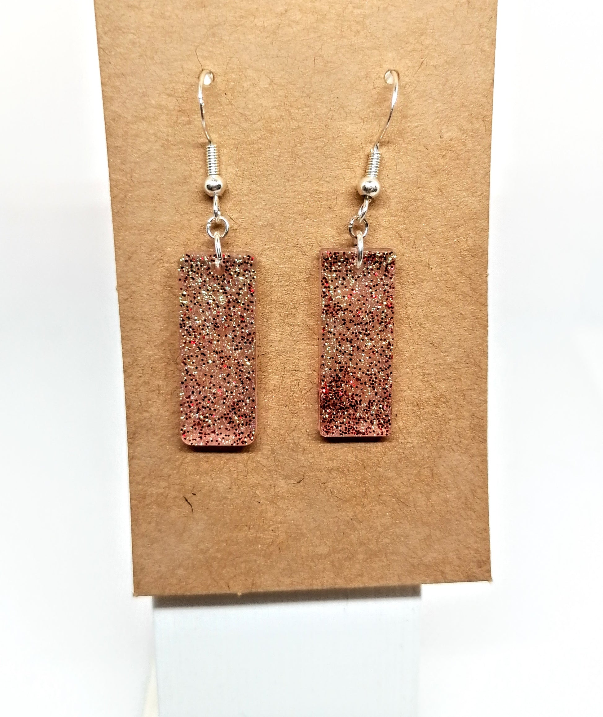 Hopeoitu rauta koukkukorvakoru. Riipus osa on glorexin kidehartsia. Kidehartsi on kirkkaan väristä. Seassa on punaista, pinkkiä ja kultaista glitteriä. Tuotteella ilmainen toimitus