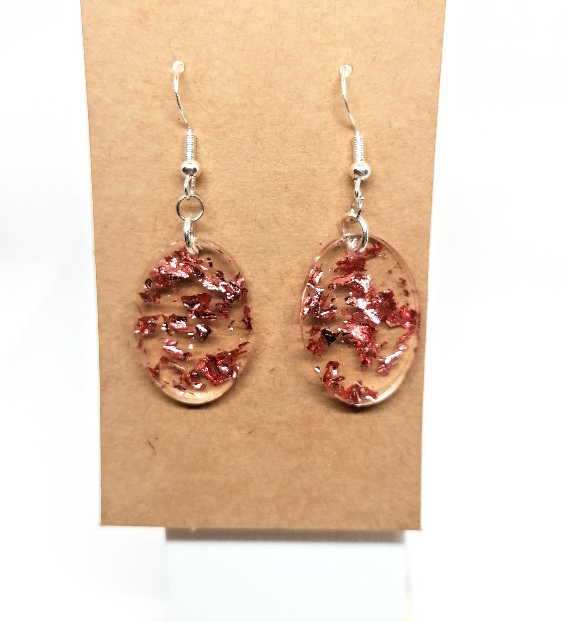 Hopeoitu rauta koukkukorvakoru. Riipus osa on glorexin kidehartsia. Kidehartsi on kirkkaan väristä, Seassa on punertavaa lehtikultaa. Tuotteella ilmainen toimitus