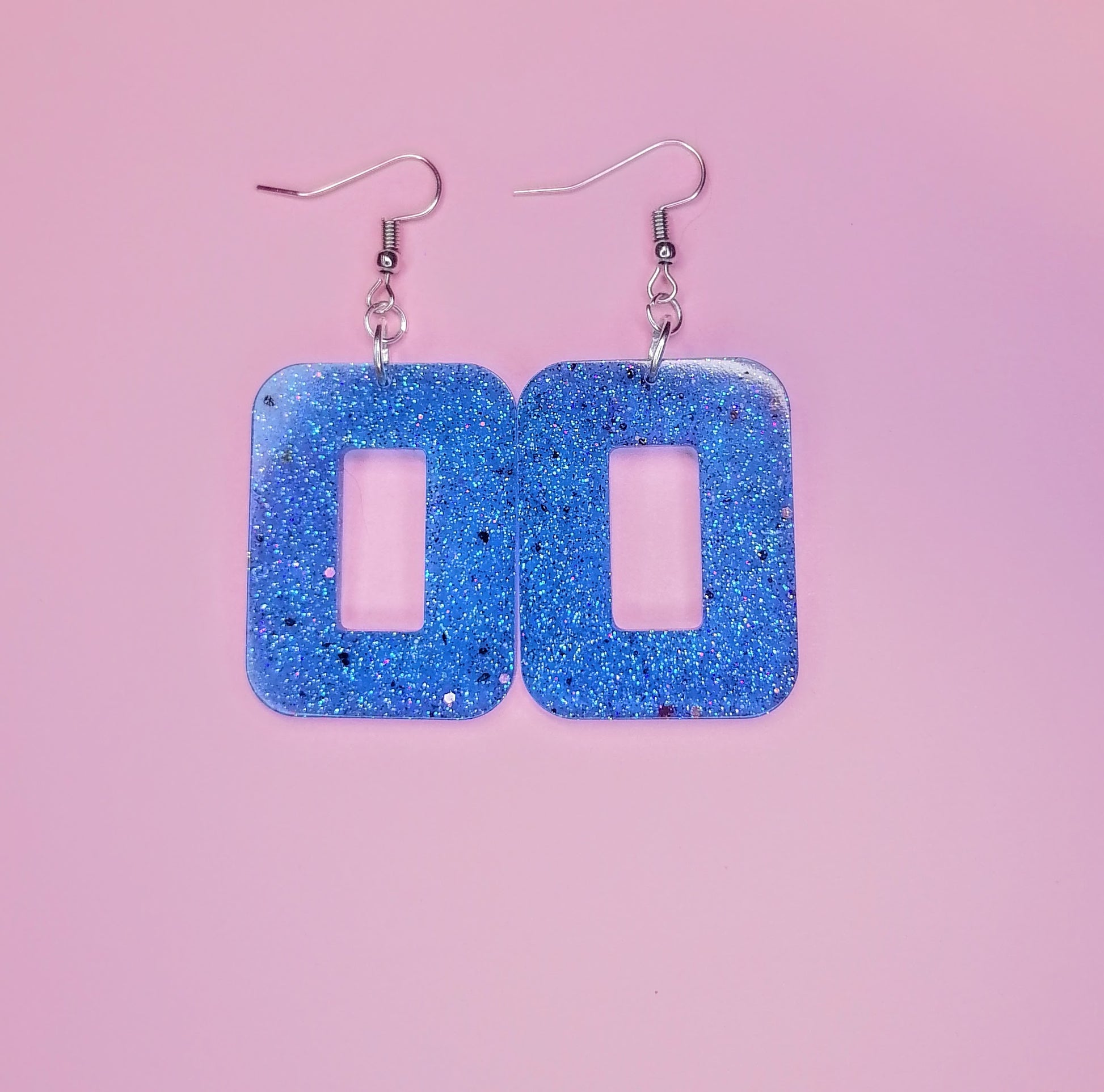 Hopeoitu rauta koukkukorvakoru. Riipus osa on glorexin kidehartsia. Kidehartsi on värjätty sinisen sävyyn. seassa on glitteriä. Tuotteella ilmainen toimitus