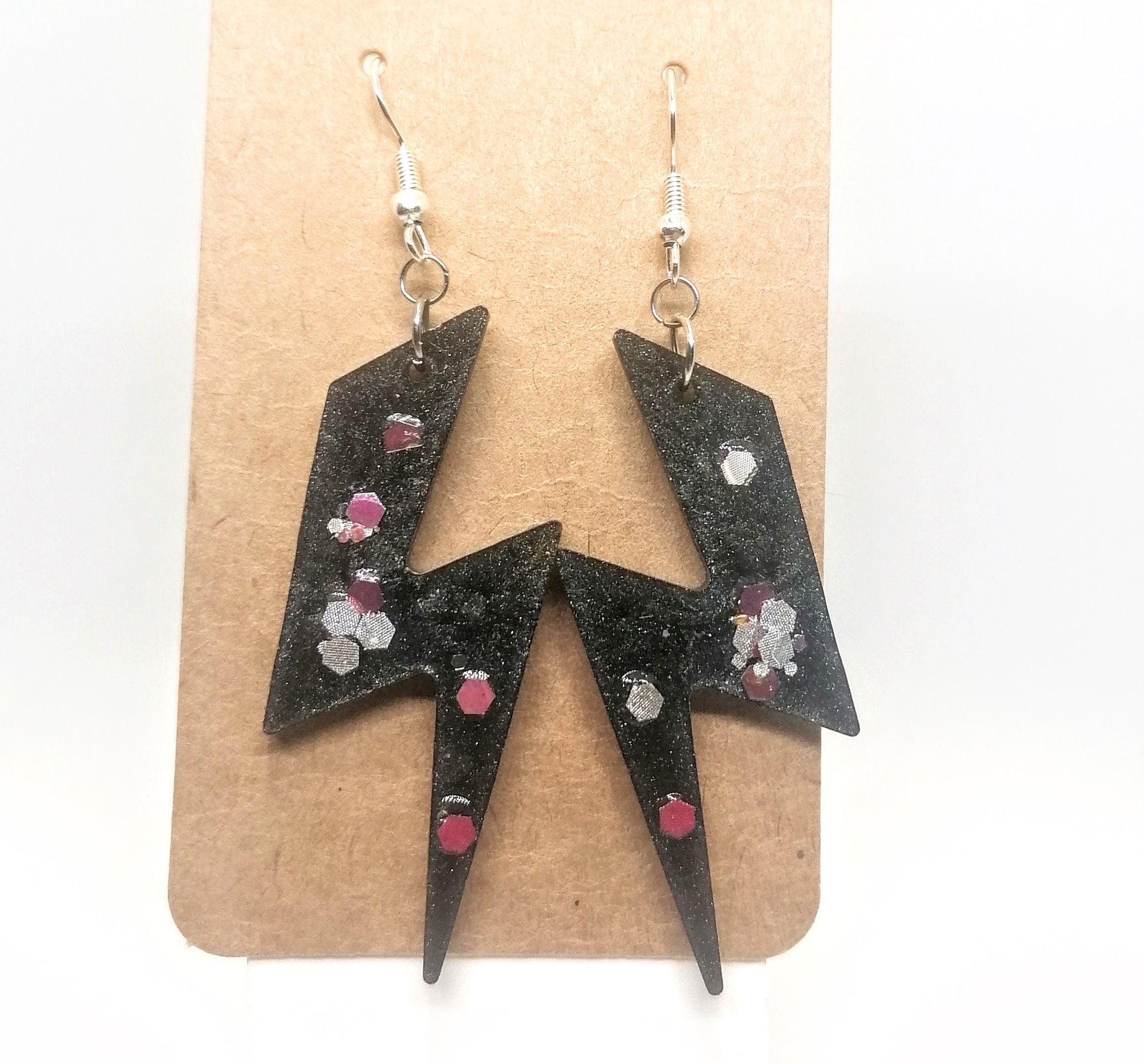 Hopeoitu rauta koukkukorvakoru. Riipus on glorexin kidehartsia, joka on värjätty harmaaksi. Edessä on hileitä. Seassa myös glitteriä. Tuotteella ilmainen toimitus.