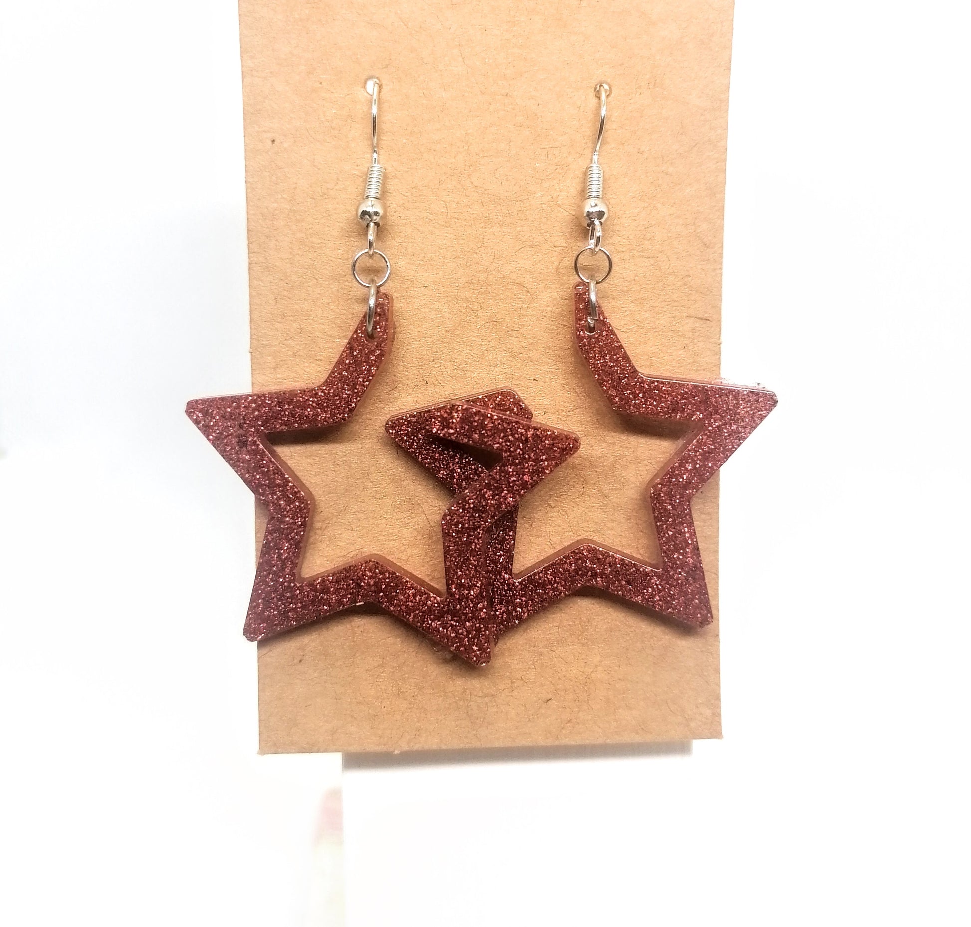 Hopeoitu rauta koukkukorvakoru. Riipus on glorexin kidehartsia, joka on värjätty puna/ruskeaksi. Seassa myös glitteriä. Tuotteella ilmainen toimitus.