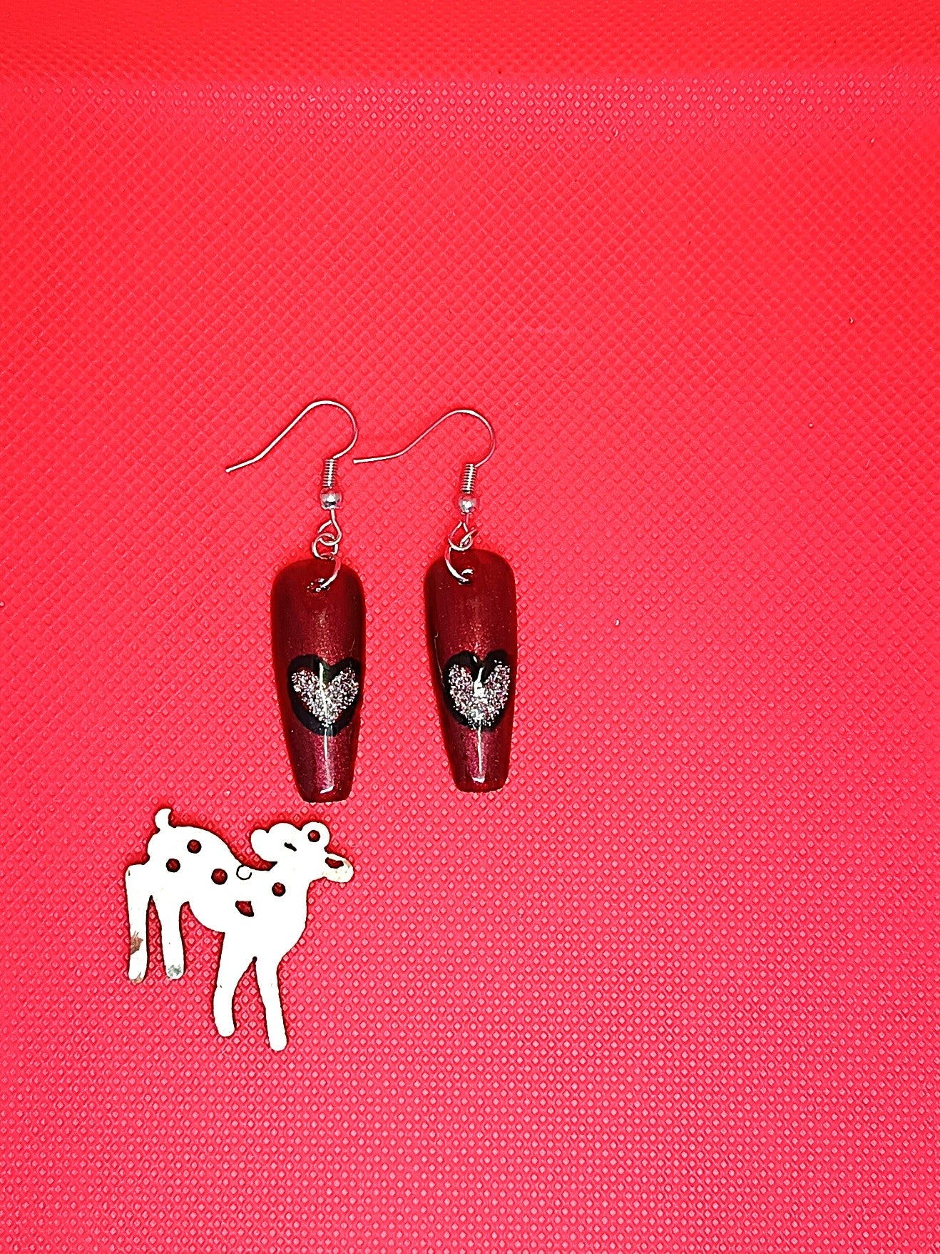 Press On kynnestä tehty koru. Päällä geelilakka. Korussa hopeoitu koukku. Nikkelitön ja allergiatestattu. Tuotteella ilmainen toimitus.