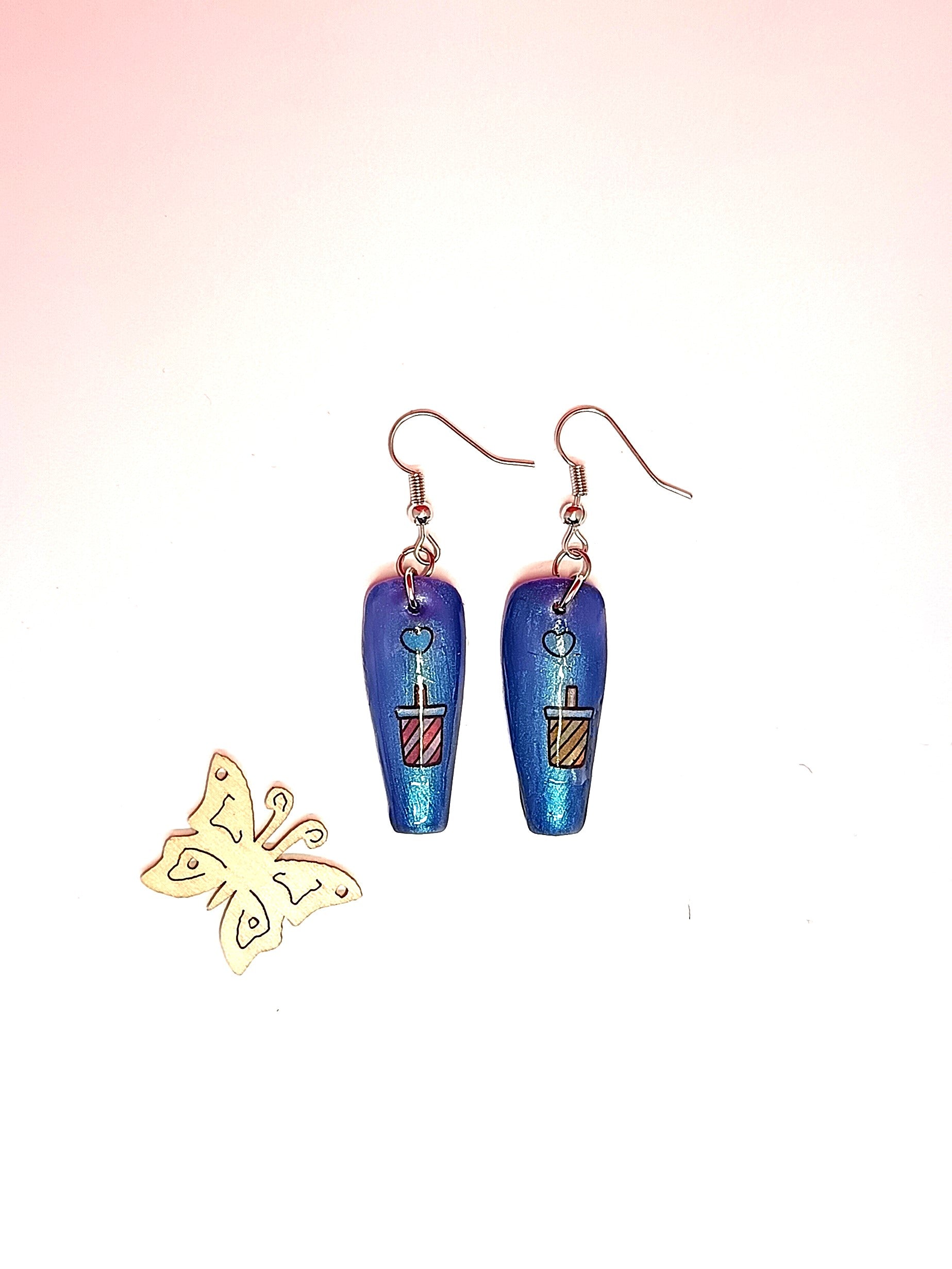 Press On kynnestä tehty koru. Päällä geelilakka. Etupuolella tarrat. Korussa hopeoitu koukku. Nikkelitön ja allergiatestattu. Tuotteella ilmainen toimitus.
